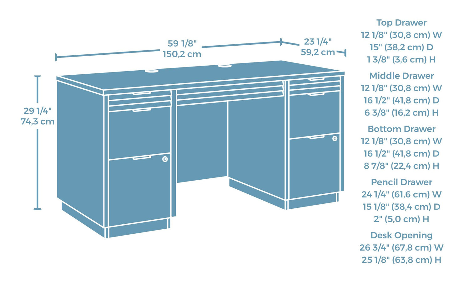 Largeur : 59,13 po (150,2 cm) Hauteur : 29,25 po (74,3 cm) Profondeur : 23,31 po (59,2 cm)