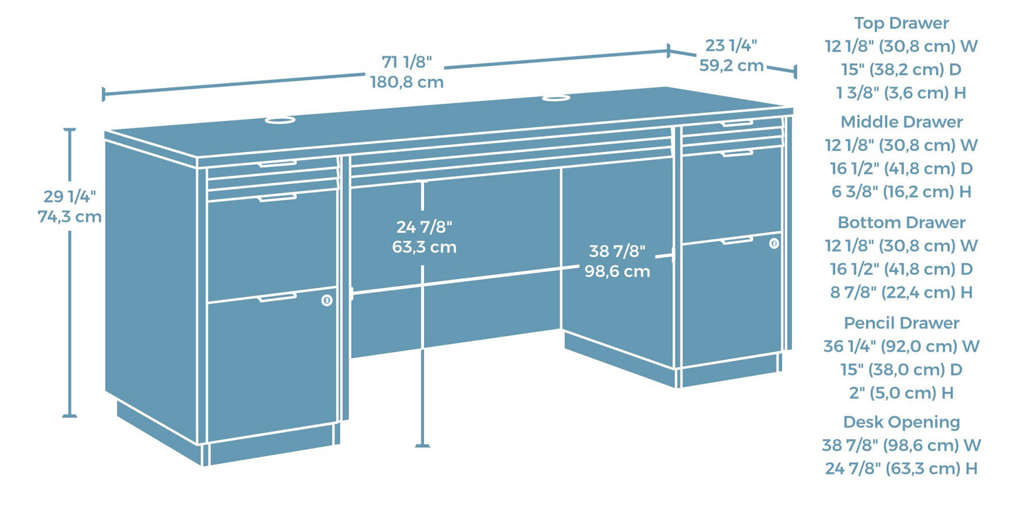 Largeur : 71,18 po (180,8 cm) Hauteur : 29,25 po (74,3 cm) Profondeur : 23,31 po (59,2 cm)