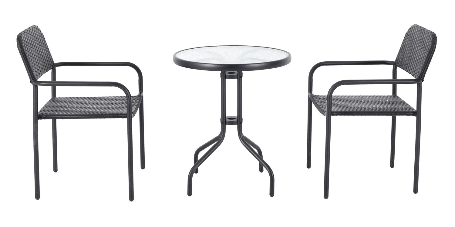 Chaise bistro Paris pour la terrasse à l’extérieur - osier en résine tressé à la main, résistante aux rayons UV et aux intempéries - noire
