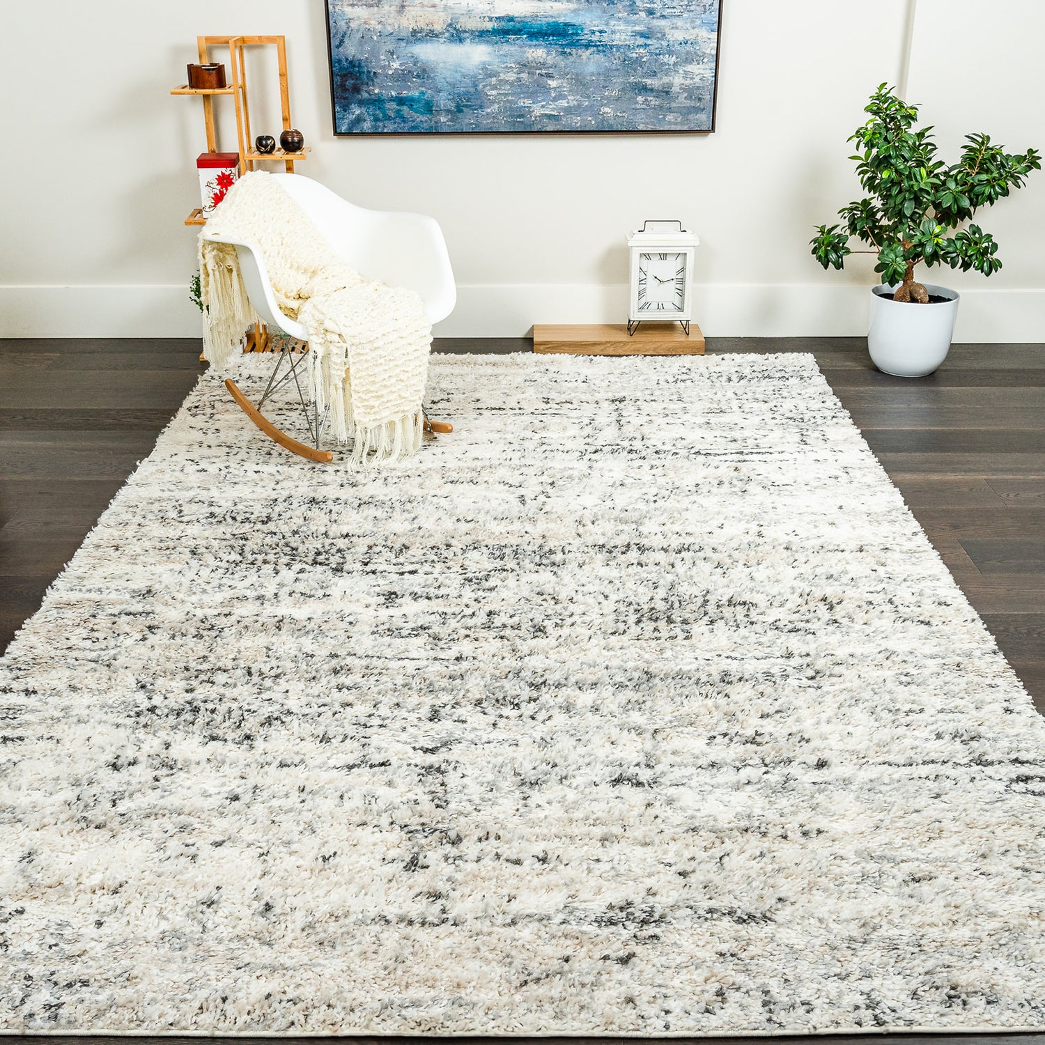 Carpette à poil long Paris crème à motif de vagues - 6 pi 7 po x 9 pi 6 po