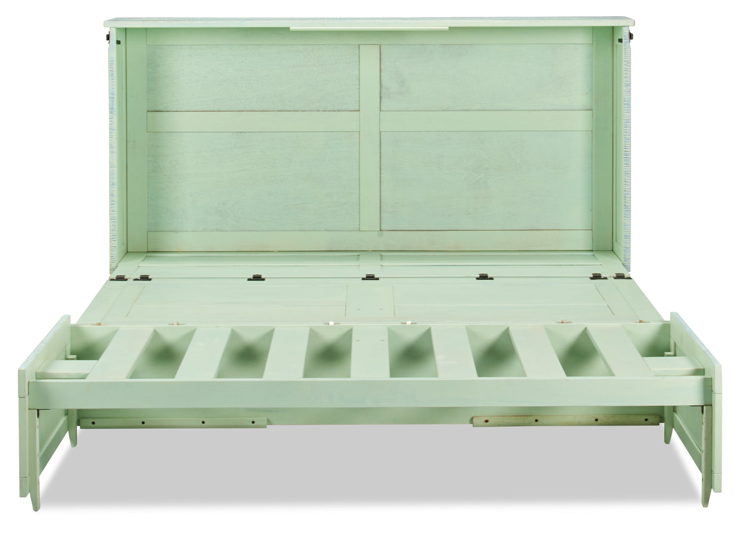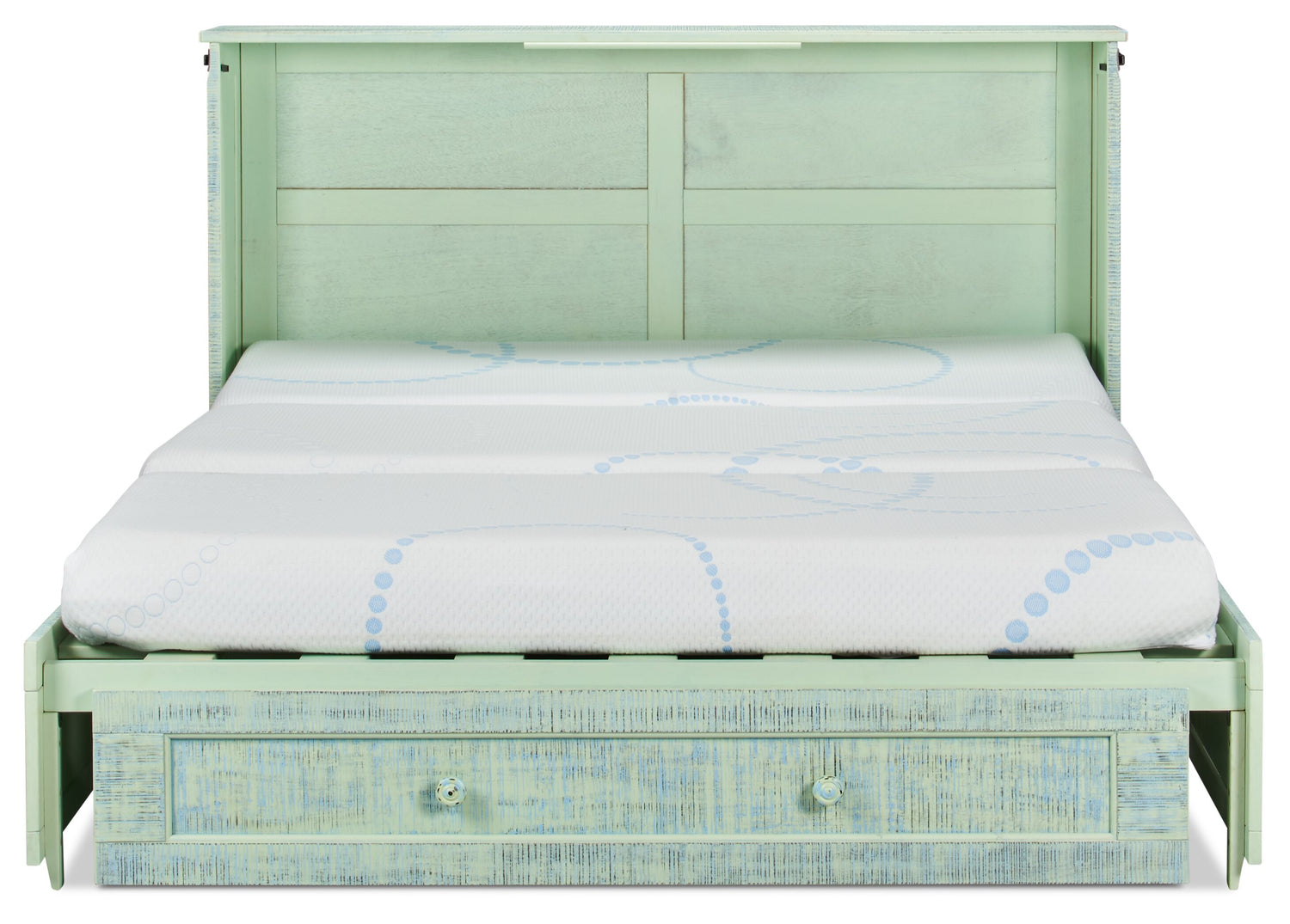 | Lit convertible | Le lit se plie en une commode pour un rangement compact. |