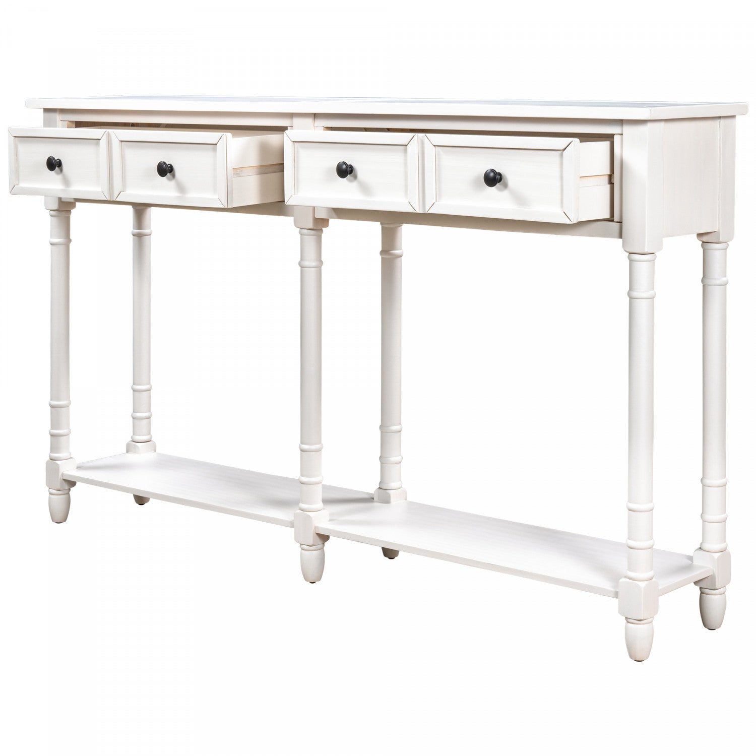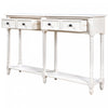 | Deux grands tiroirs offrent un espace de rangement discret pour vos essentiels du salon ou de l'entrée. L'étagère du bas offre amplement d'espace pour vos paniers, livres ou objets décoratifs. Sa structure en bois massif assure stabilité, robustesse et durabilité. Ses détails élégants comprennent des pieds fuselés, des poignées rondes et des lignes peintes. Facile à assembler grâce à la quincaillerie et aux outils fournis, ce meuble s'installe en moins de 40 minutes. |