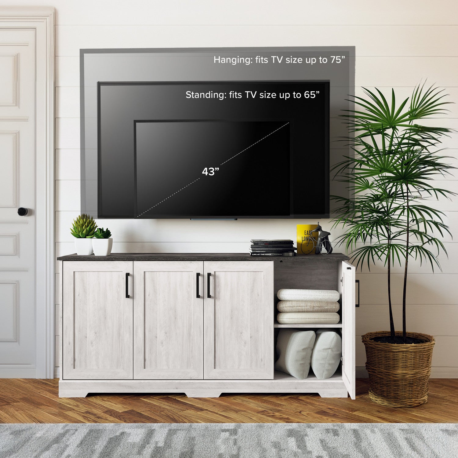 Largeur : 66 po (167,6 cm) Hauteur : 31,75 po (80,6 cm) Profondeur : 16 po (40,6 cm)