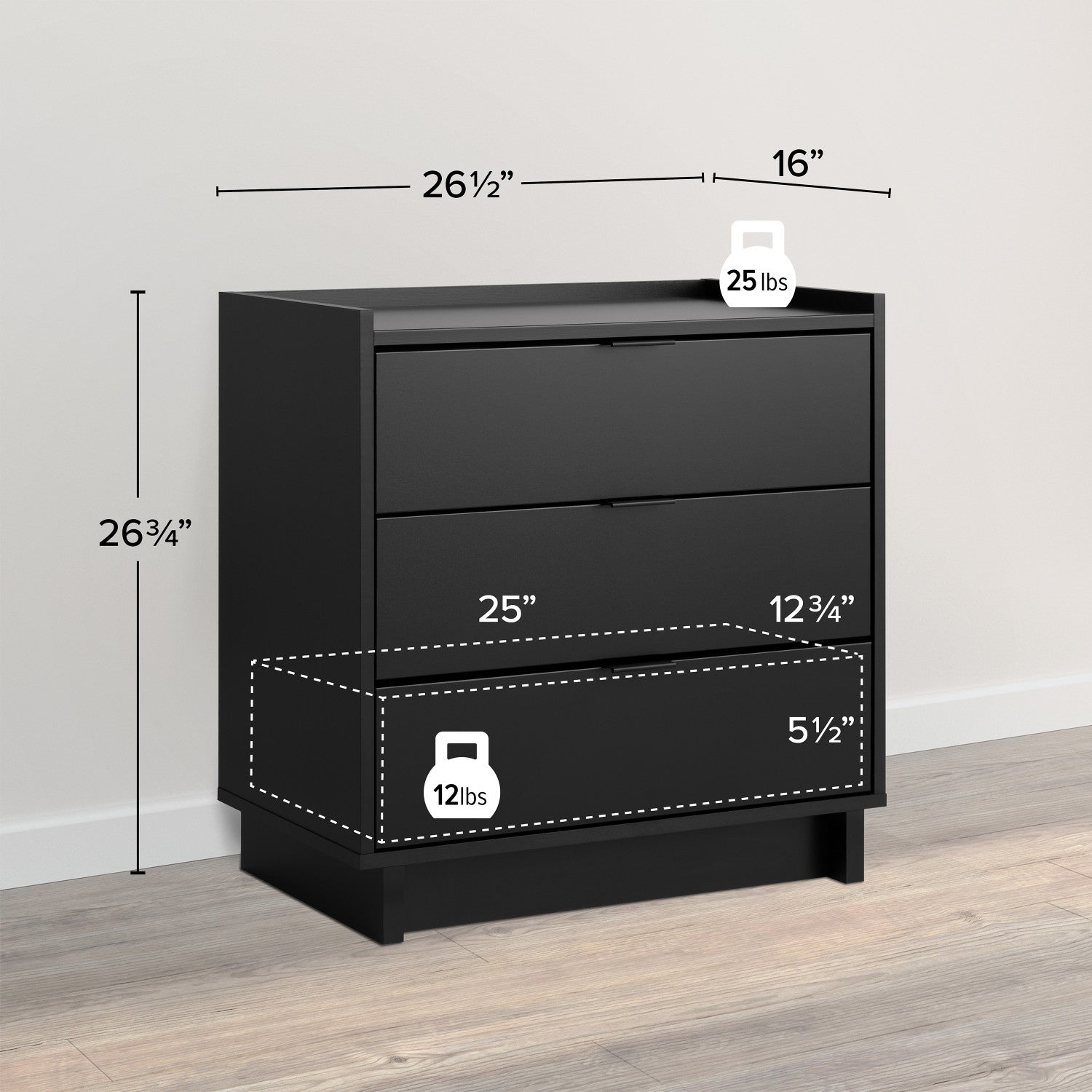 Largeur : 26,5 po (67,3 cm) Hauteur : 26,75 po (67,9 cm) Profondeur : 16 po (40,6 cm)