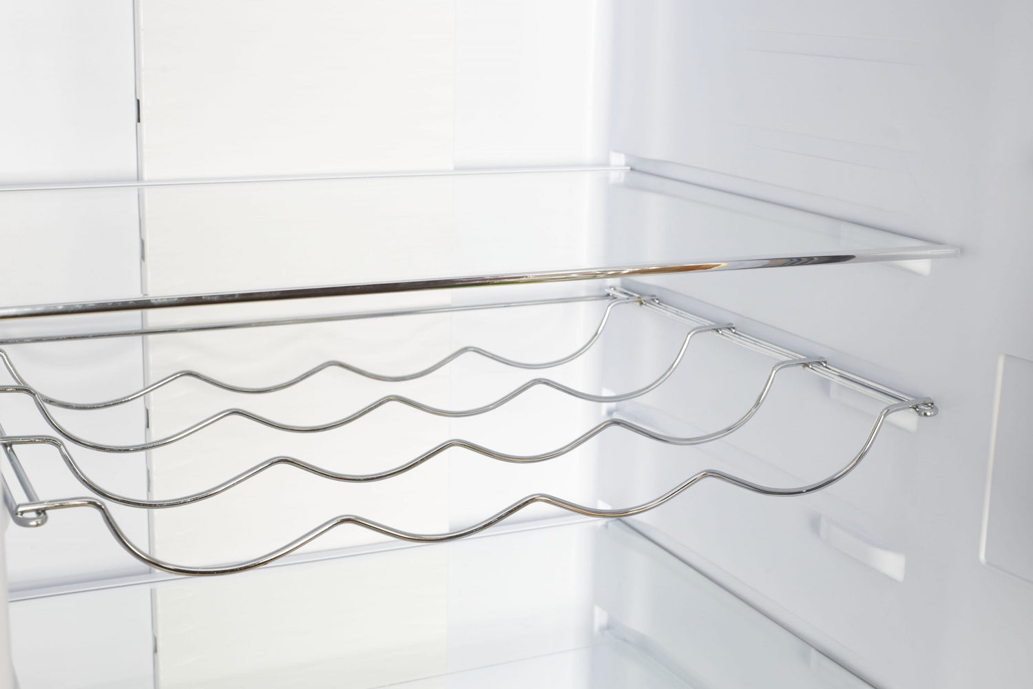 | Tablettes dans le réfrigérateur | Support à vin réglable pour 4 bouteilles et 4 tablettes réglables en verre |