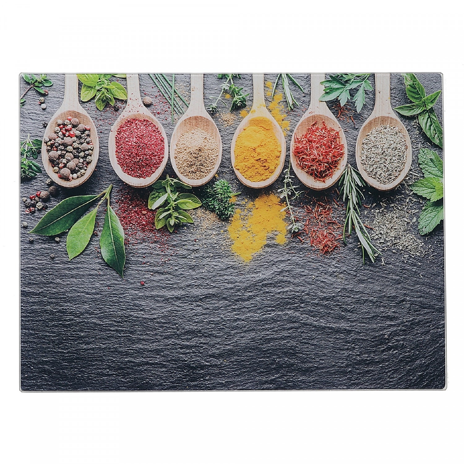 La planche à découper en verre imprimé est un équipement de cuisine essentiel qui convient parfaitement à une utilisation dans la cuisine. Elle est composée d'un verre de haute qualité sur lequel il est imprimé une image d'épices. Coupez ou hachez des légumes sur cette planche à découper, préparez votre repas et profitez d'une belle soirée en famille ou entre amis. Cette planche à découper sur le thème des épices peut également être utilisée pour découper les produits de la volaille. Cet article est vendu en un ensemble de 2. Conception : Planche à découper en verre imprimé multicolore orné d’épices.