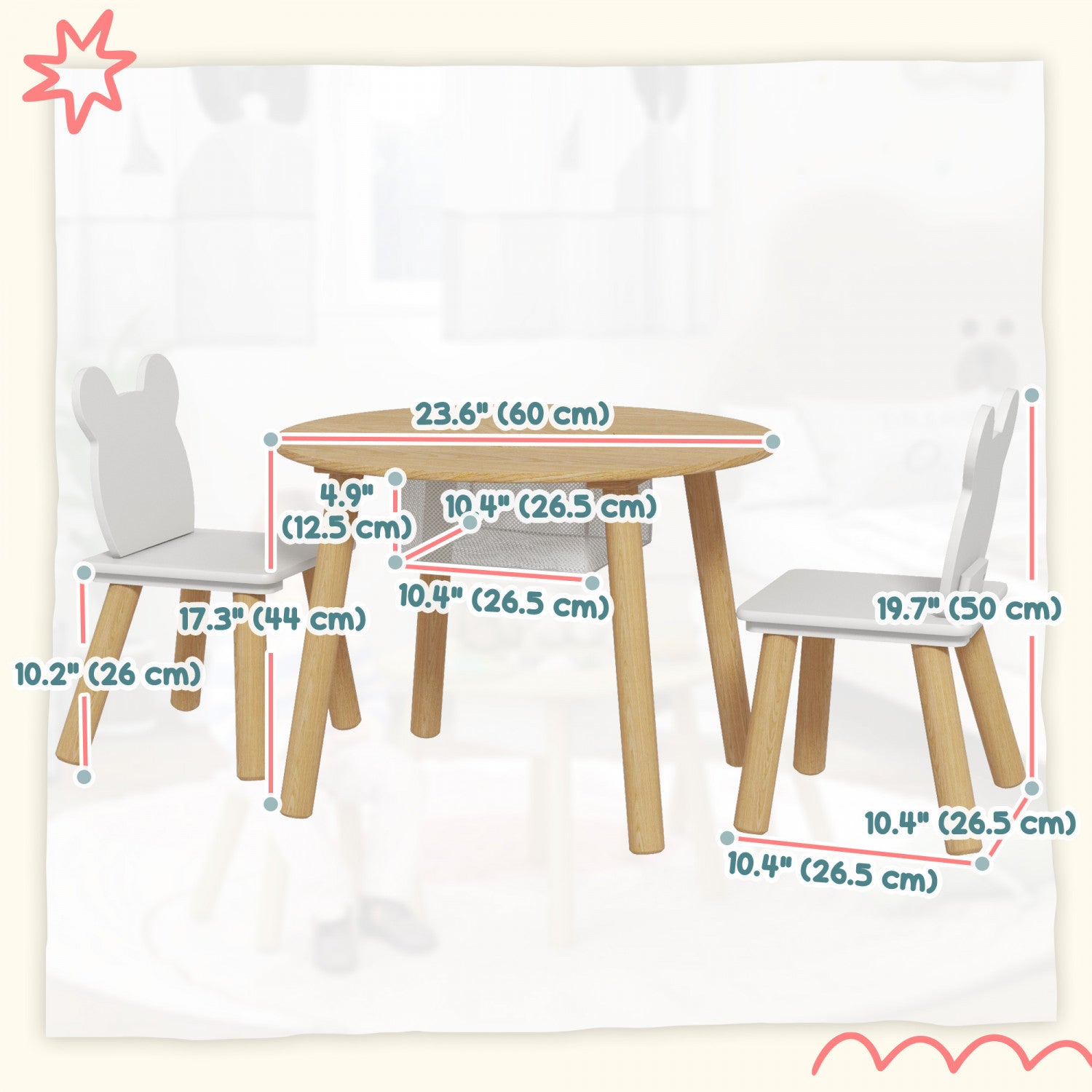 | Key Features | ● L'ensemble de trois pieces comprend une table et deux chaises pour plus de polyvalence ● Le couvercle amovible revele un sac de rangement en filet pour jouets et livres ● Les dossiers en forme d'ours ajoutent une touche amusante a chaque chaise ● Construit a partir de MDF et de bois de pin pour plus de durabilite et de securite ● Assemblage requis, favorisant une experience pratique pour les parents. |