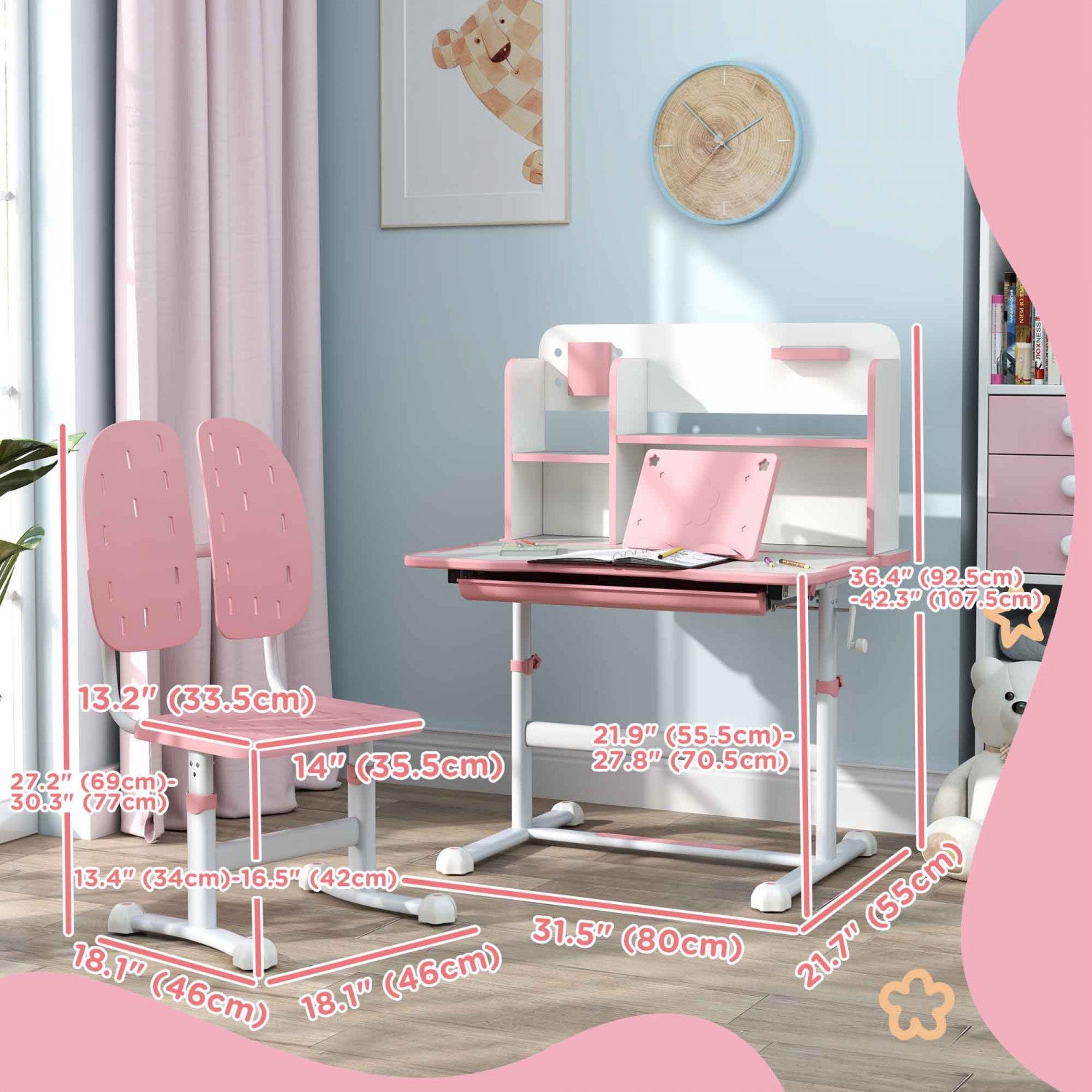 | Key Features | ● Plateau en MDF et pieds en acier pour une plus grande durabilite ● Les repose-pieds antiderapants reglables maintiennent l'equilibre sur les sols irreguliers ● Plateau reglable de 0 a 45° pour une bonne posture ● Ajustez la hauteur de la chaise et de la table pour repondre aux besoins des enfants en pleine croissance ● Comprend des etageres, un tiroir et un porte-stylos pour garder les choses bien organisees ● Le support de lecture supplementaire protege les yeux |
