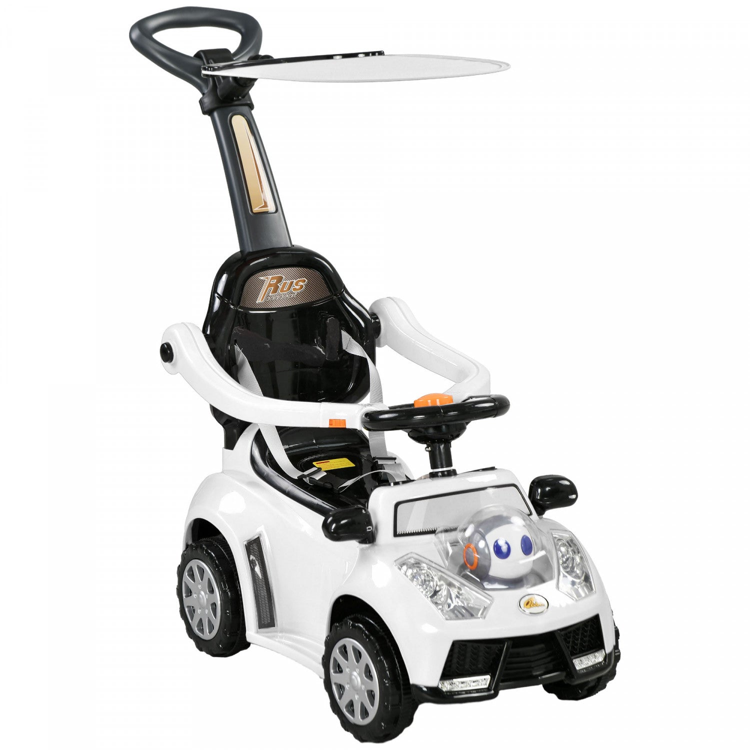 Transformez les promenades en aventures avec la voiture pour enfants 3-en-1 sur le theme du robot Qaba! Elle se transforme facilement d'une voiture a pousser pour tout-petit en une voiture coulissante, avec un auvent amovible pour les journees ensoleillees. Profitez de la tranquillite d'esprit avec la cloture de securite et engagez vos petits enfants avec des lumieres et de la musique amusantes. Convient aux enfants ages de 12 a 36 mois.