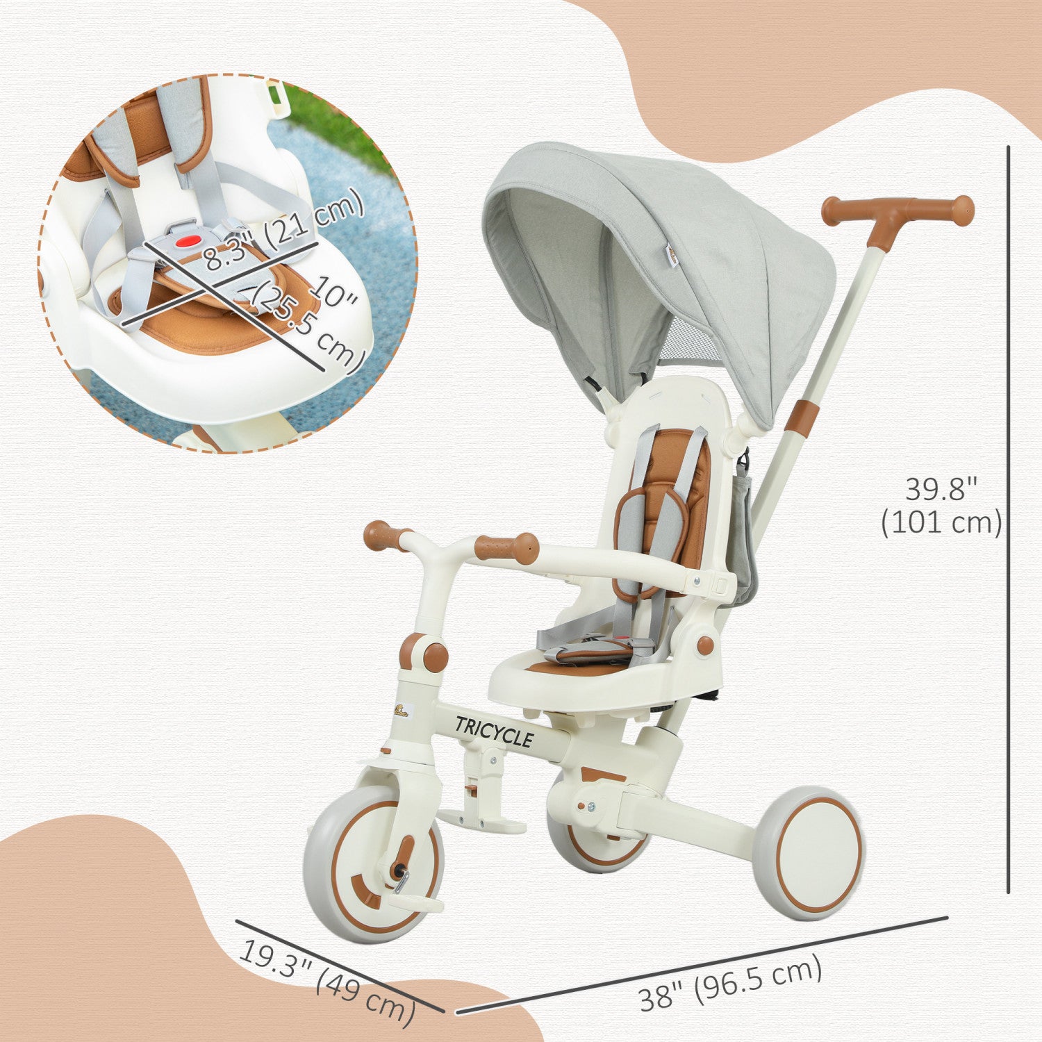 Pour relever les defis et savourer les joies de la parentalite, le tricycle Qaba 7-en-1 est la solution ideale. Evolutif, il suit la croissance de votre enfant de 1 a 5 ans, passant d'un tricycle guide a un velo autonome. Securisant grace a un harnais a cinq points et une barre amovible, il favorise aussi la connexion parent-enfant avec sa poignee reglable et son siege convertible. Confort et securite sont au rendez-vous pour chaque petite aventure.
