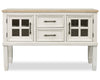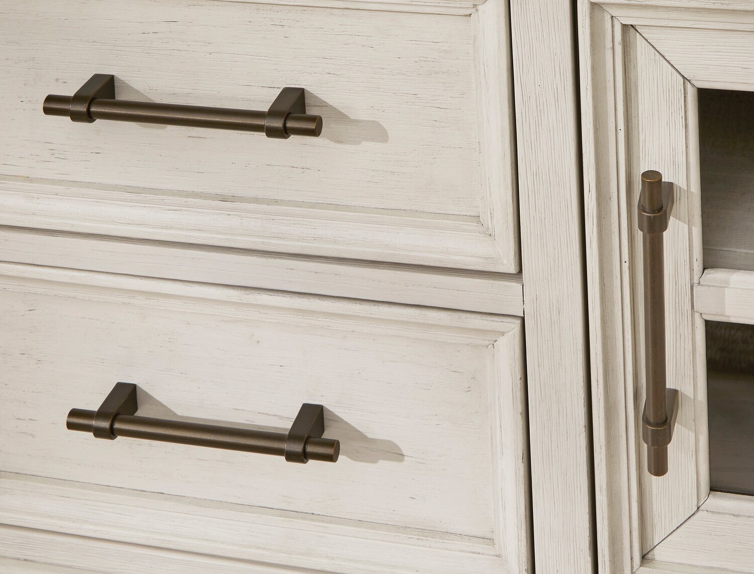 | Options de rangement | Rangez les ustensiles et les ustensiles de service dans les deux tiroirs et la vaisselle dans les deux armoires de style carreaux de fenêtre. |