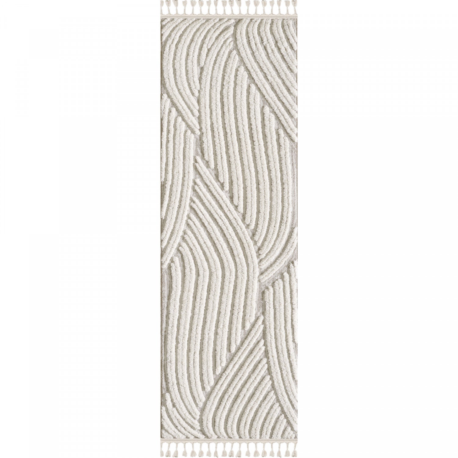 Cette magnifique carpette à poil long arbore un motif ondulé exquis et des poils neutres crème clair. Que vous cherchiez une superbe pièce maîtresse pour la salle de séjour, une carpette confortable pour la chambre de bébé ou un endroit douillet pour poser vos pieds à la table de salle à manger, cette carpette à poils en relief 3D et à motif géométrique saura vous plaire. Le poil épais et moelleux de cette carpette mesure 0,67 po (17 mm) de hauteur. L’utilisation d’un matériau en polypropylène à 100 % et d'une technologie européenne de tissage délicat permet à cette carpette de conserver sa belle apparence au fil du temps.