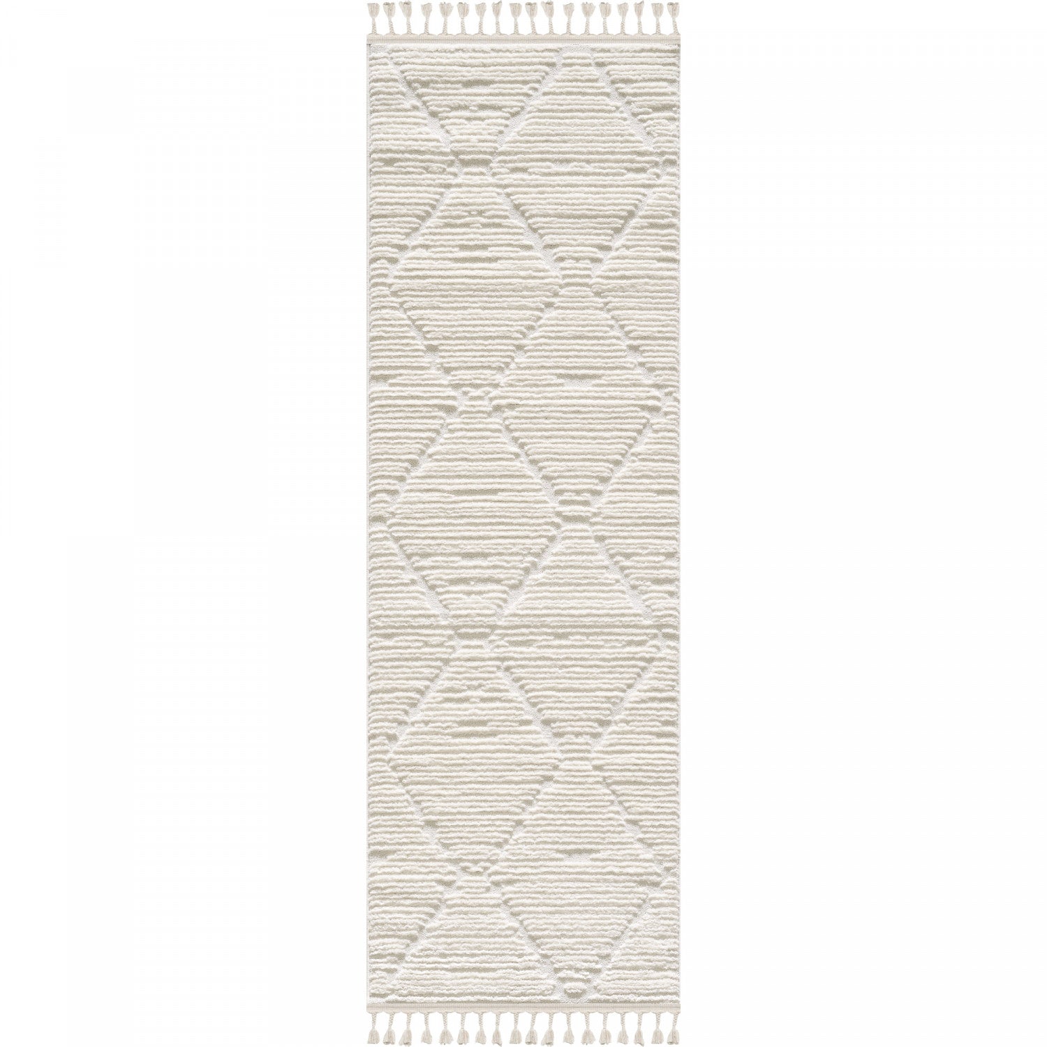 Cette magnifique carpette à poil long arbore un motif de treillis exquis et des poils neutres crème clair. Que vous cherchiez une superbe pièce maîtresse pour la salle de séjour, une carpette confortable pour la chambre de bébé ou un endroit douillet pour poser vos pieds à la table de salle à manger, cette carpette à poils en relief 3D et à motif géométrique saura vous plaire. Le poil épais et moelleux de cette carpette mesure 0,67 po (17 mm) de hauteur. L’utilisation d’un matériau en polypropylène à 100 % et d'une technologie européenne de tissage délicat permet à cette carpette de conserver sa belle apparence au fil du temps.