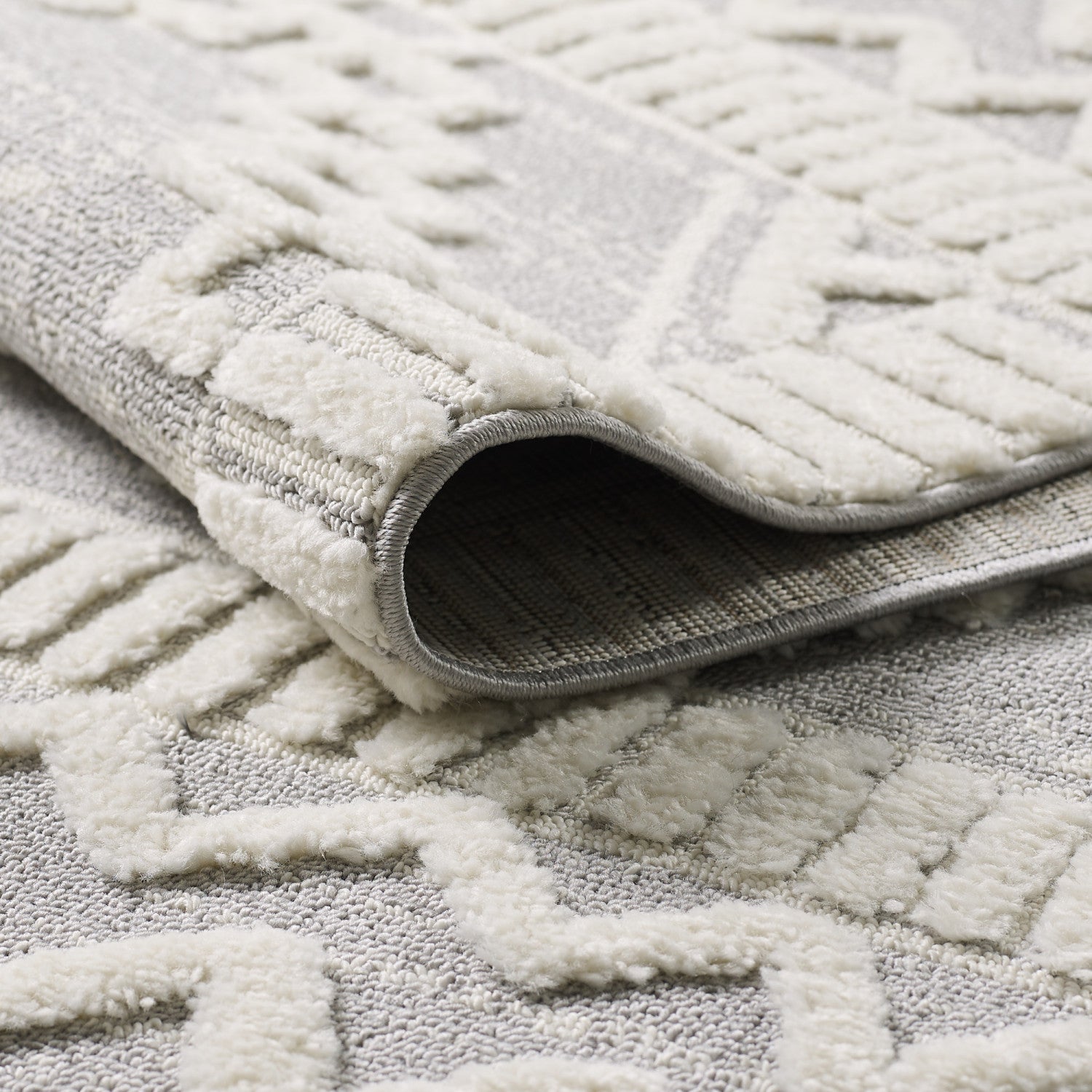 Cette magnifique carpette à poil long arbore un motif marocain exquis et des poils neutres crème clair. Que vous cherchiez une superbe pièce maîtresse pour la salle de séjour, une carpette confortable pour la chambre de bébé ou un endroit douillet pour poser vos pieds à la table de salle à manger, cette carpette à poils en relief 3D et à motif géométrique saura vous plaire. Le poil épais et moelleux de cette carpette mesure 0,67 po (17 mm) de hauteur. L’utilisation d’un matériau en polypropylène à 100 % et d'une technologie européenne de tissage délicat permet à cette carpette de conserver sa belle apparence au fil du temps.