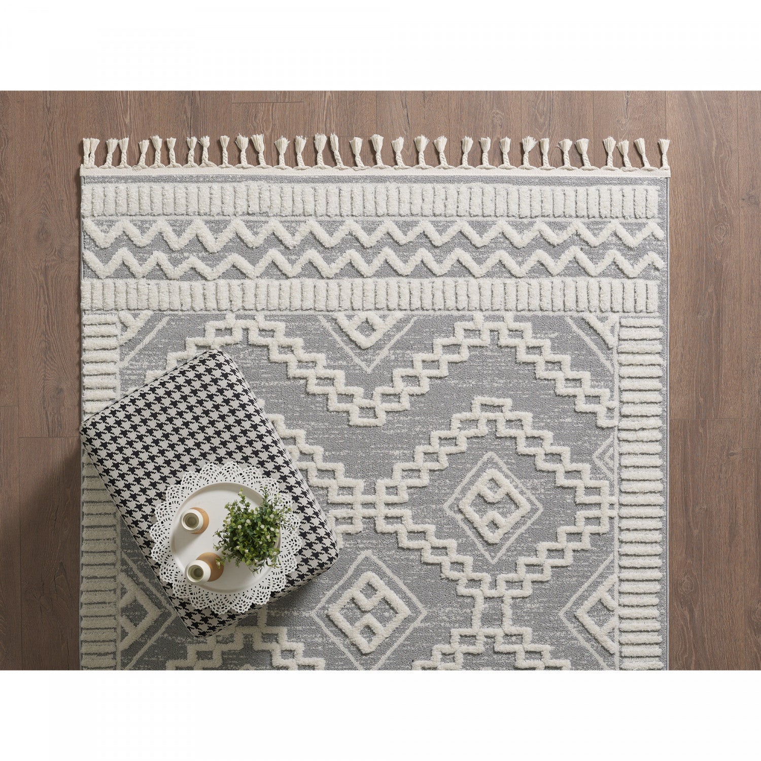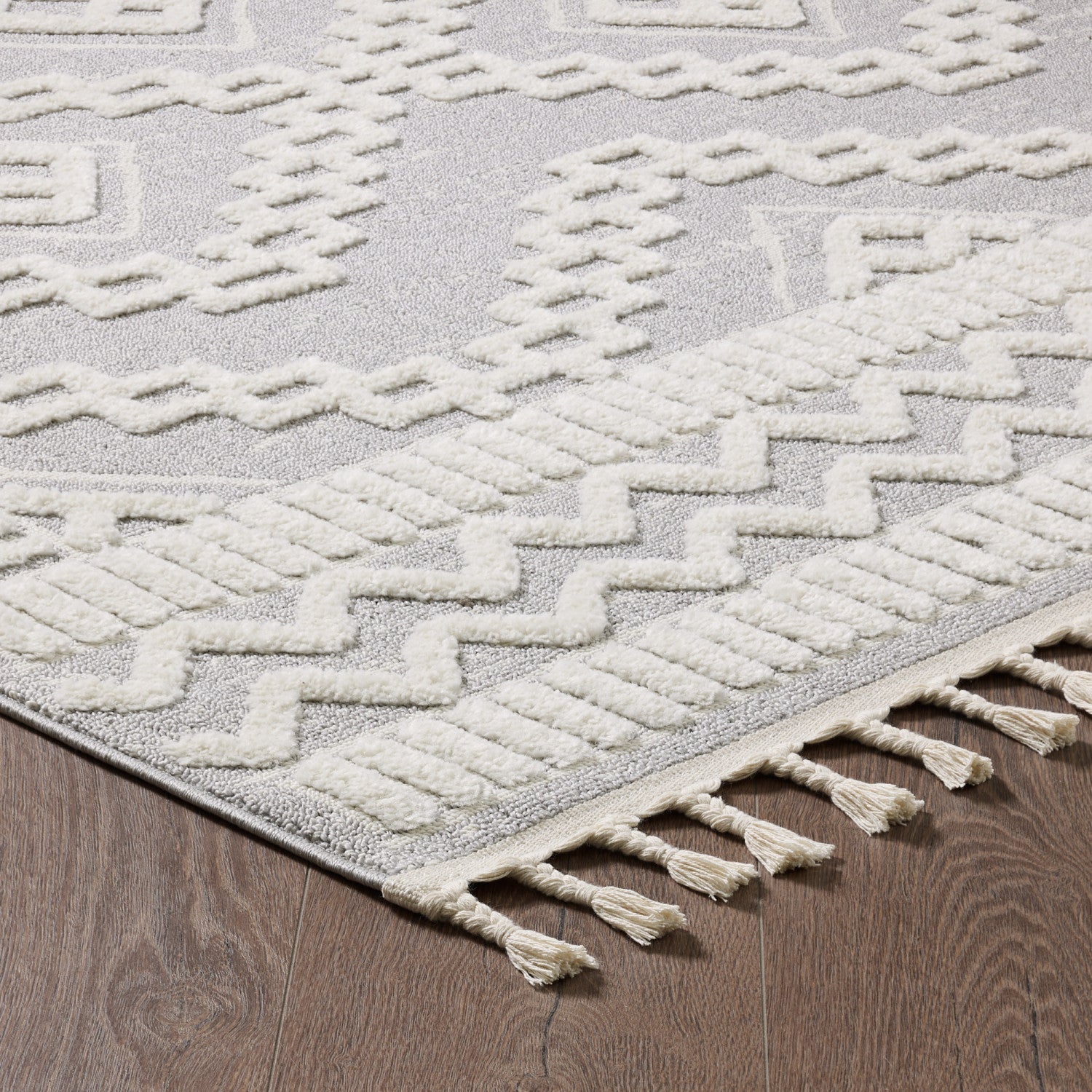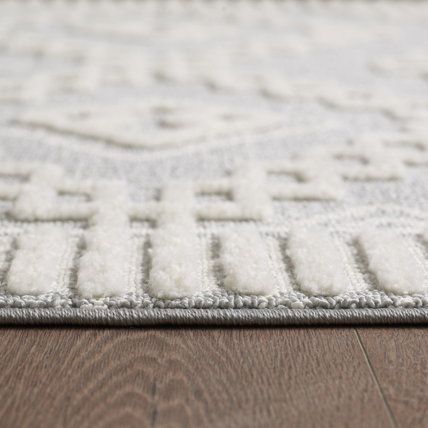Cette magnifique carpette à poil long arbore un motif marocain exquis et des poils neutres crème clair. Que vous cherchiez une superbe pièce maîtresse pour la salle de séjour, une carpette confortable pour la chambre de bébé ou un endroit douillet pour poser vos pieds à la table de salle à manger, cette carpette à poils en relief 3D et à motif géométrique saura vous plaire. Le poil épais et moelleux de cette carpette mesure 0,67 po (17 mm) de hauteur. L’utilisation d’un matériau en polypropylène à 100 % et d'une technologie européenne de tissage délicat permet à cette carpette de conserver sa belle apparence au fil du temps.
