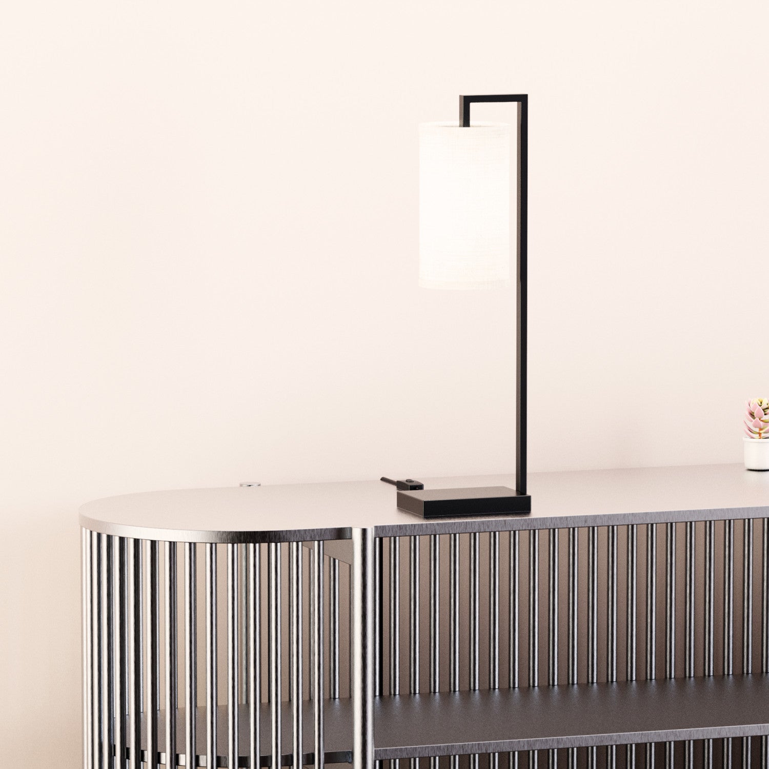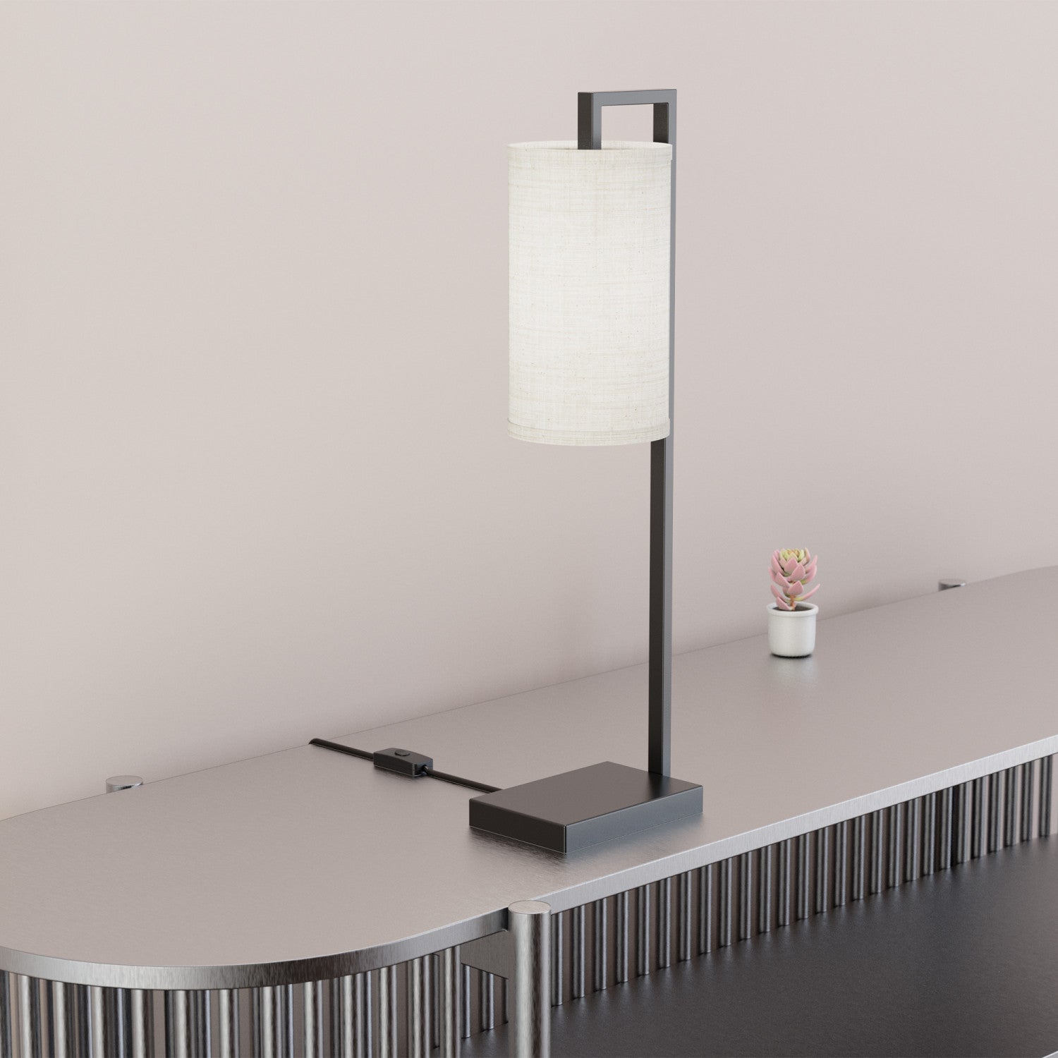Cette lampe de table est un classique moderne doté d’une armature rectangulaire à lignes épurées qui soutient un abat-jour cylindrique en tissu. La conception de cette lampe est compatible avec les ampoules E26 afin d’offrir polyvalence et chaleur à n’importe quel système d’éclairage. Sa forme géométrique simple s’agence magnifiquement à la texture douce de l’abat-jour, ce qui en fait une solution d’éclairage idéale pour les espaces contemporains à la recherche d’un mélange de simplicité et d’élégance.