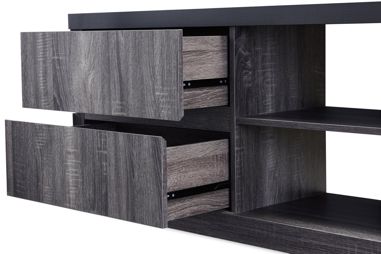 | Détails décoratifs | Le fini vieilli confère une légère touche rustique à ce meuble pour téléviseur. |