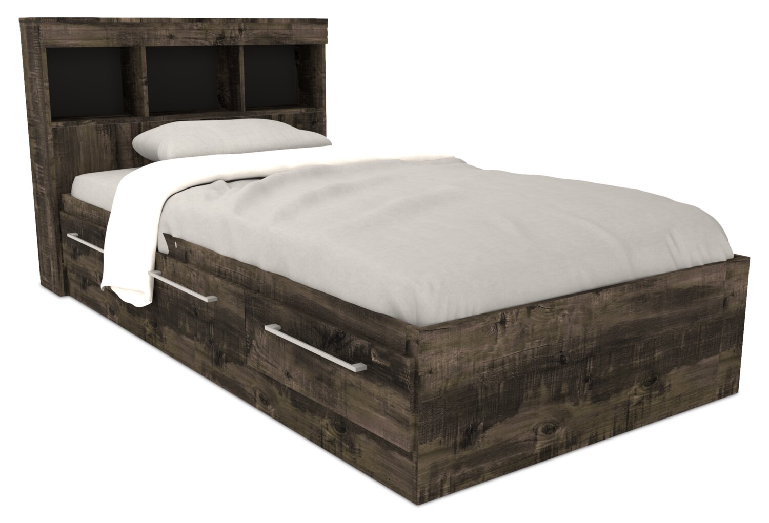 | Options de rangement | Trois tiroirs sous le lit, trois compartiments dans la tête de lit et une surface spacieuse sur le dessus de la tête de lit. |