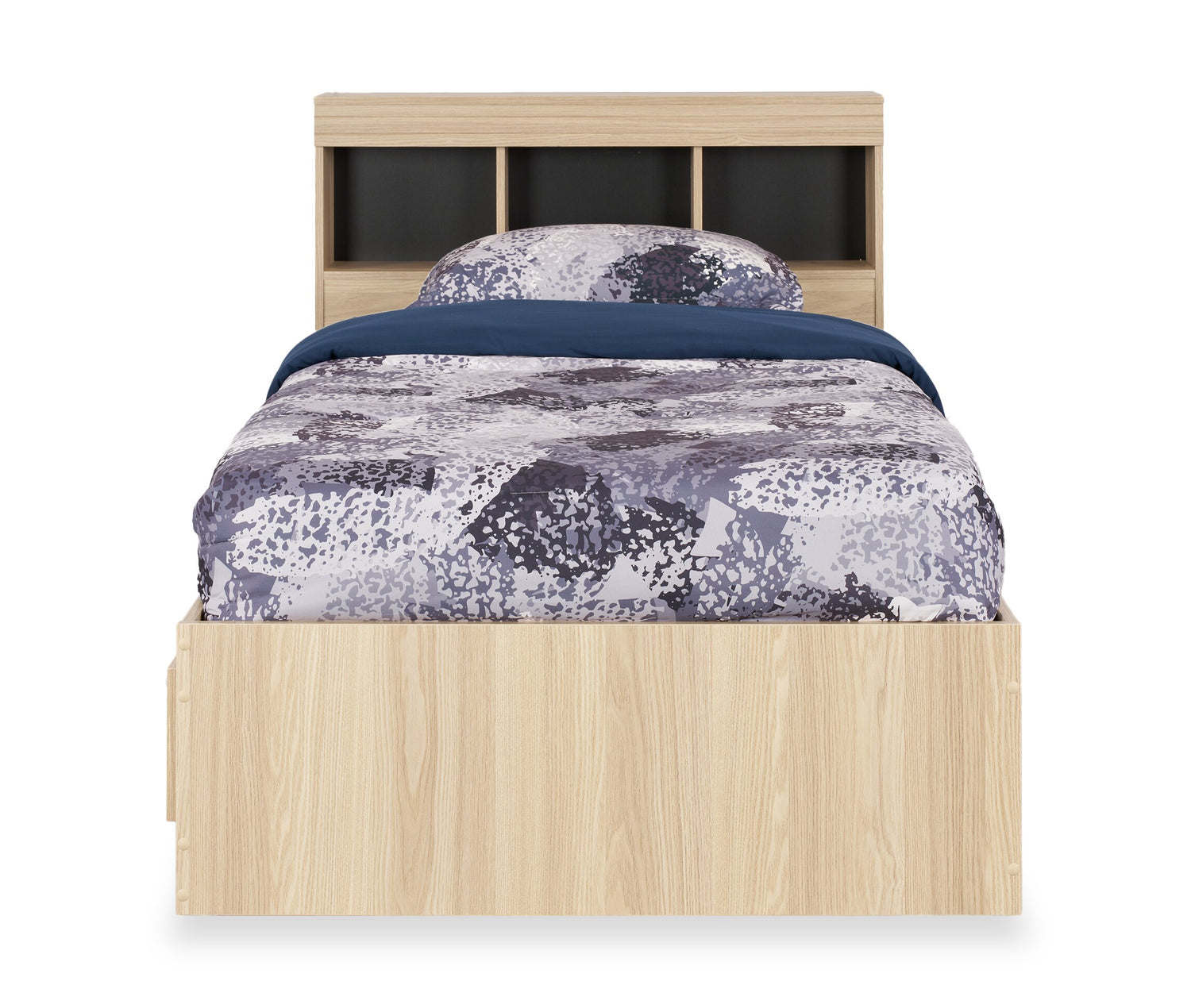 | Options de rangement | Trois tiroirs sous le lit, trois compartiments dans la tête de lit et une surface spacieuse sur le dessus de la tête de lit. |