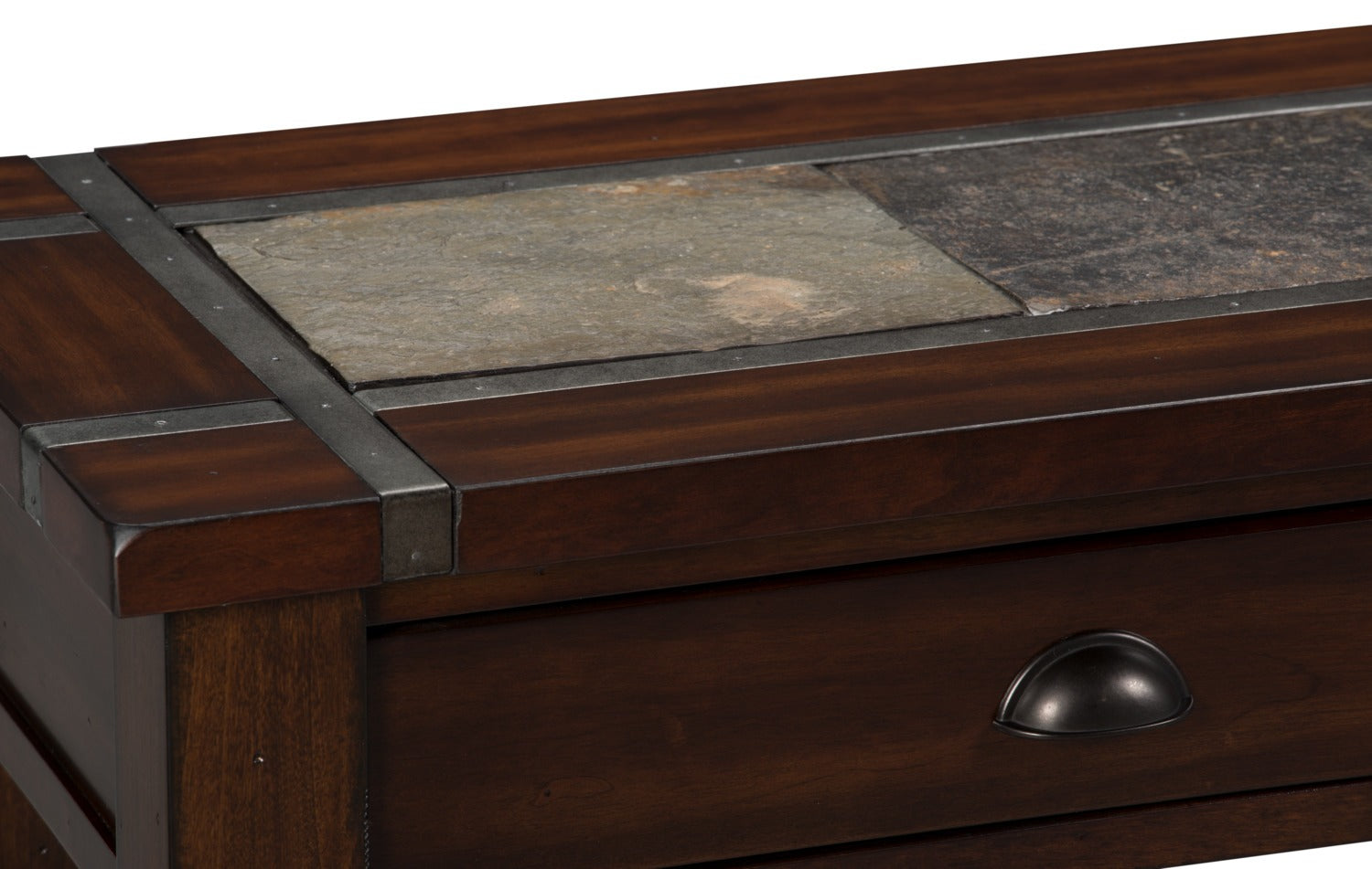 L'ardoise est une pierre à grain fin dotée d'un lustre et elle possède une surface lisse au toucher. Lorsqu'elle est utilisée dans la fabrication de meubles, l'ardoise confère une surface lisse et plane qui arbore un style moderne et rehausse l'élégance de tout meuble.