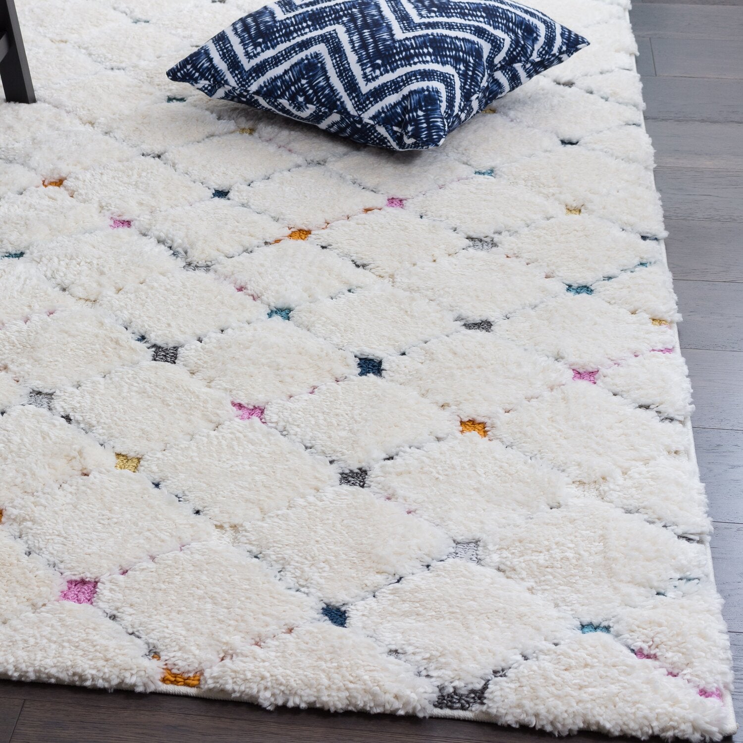 | Détails décoratifs | Conception à poils longs et courts 3D et à motif de treillis multicolore. |
