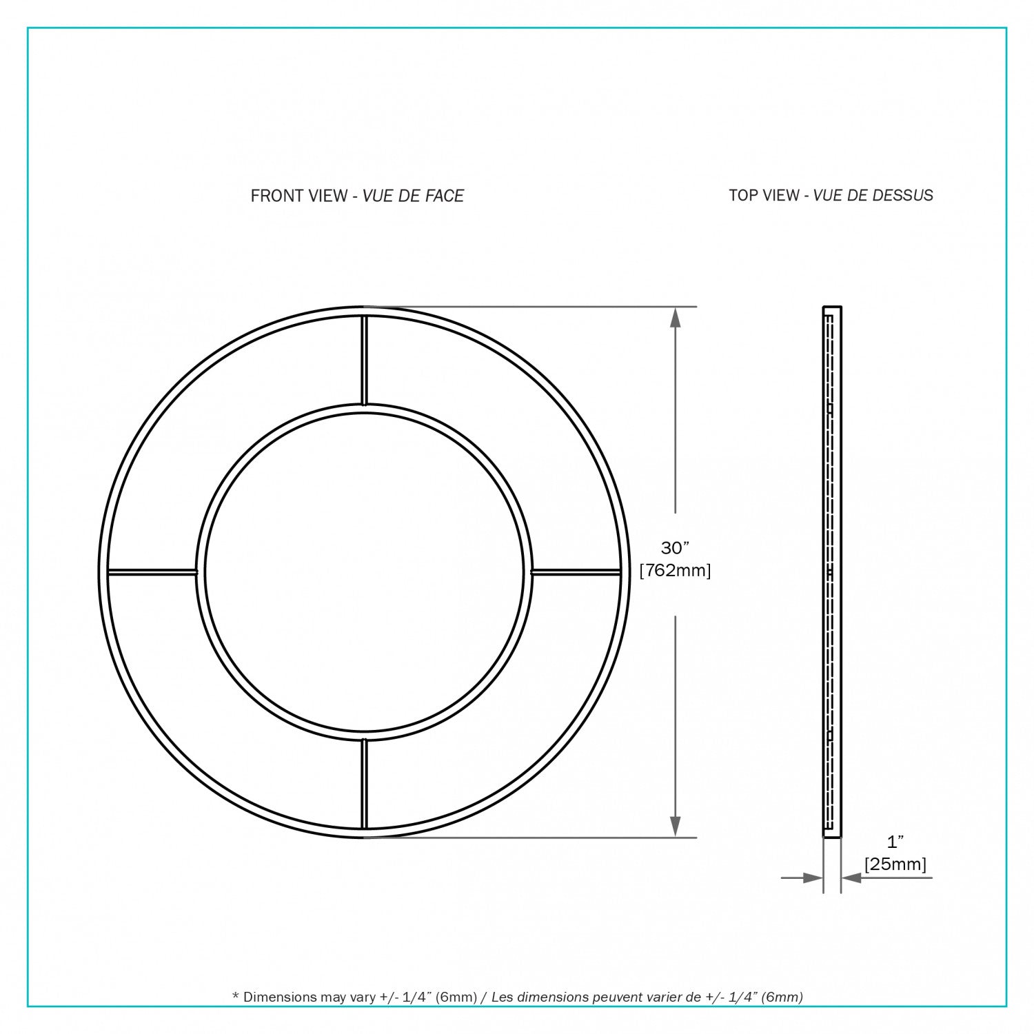 Largeur : 1 po (2,5 cm) Hauteur : 29,92 po (76,0 cm) Profondeur : 29,92 po (76,0 cm)