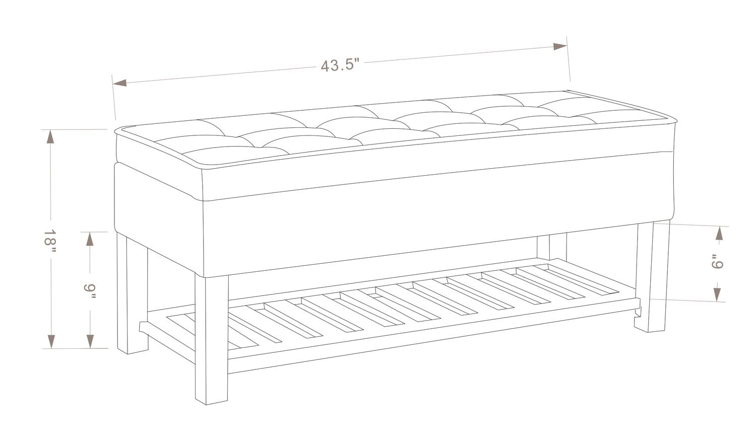 Largeur : 43,5 po (110,5 cm) Hauteur : 18 po (45,7 cm) Profondeur : 17 po (43,2 cm)