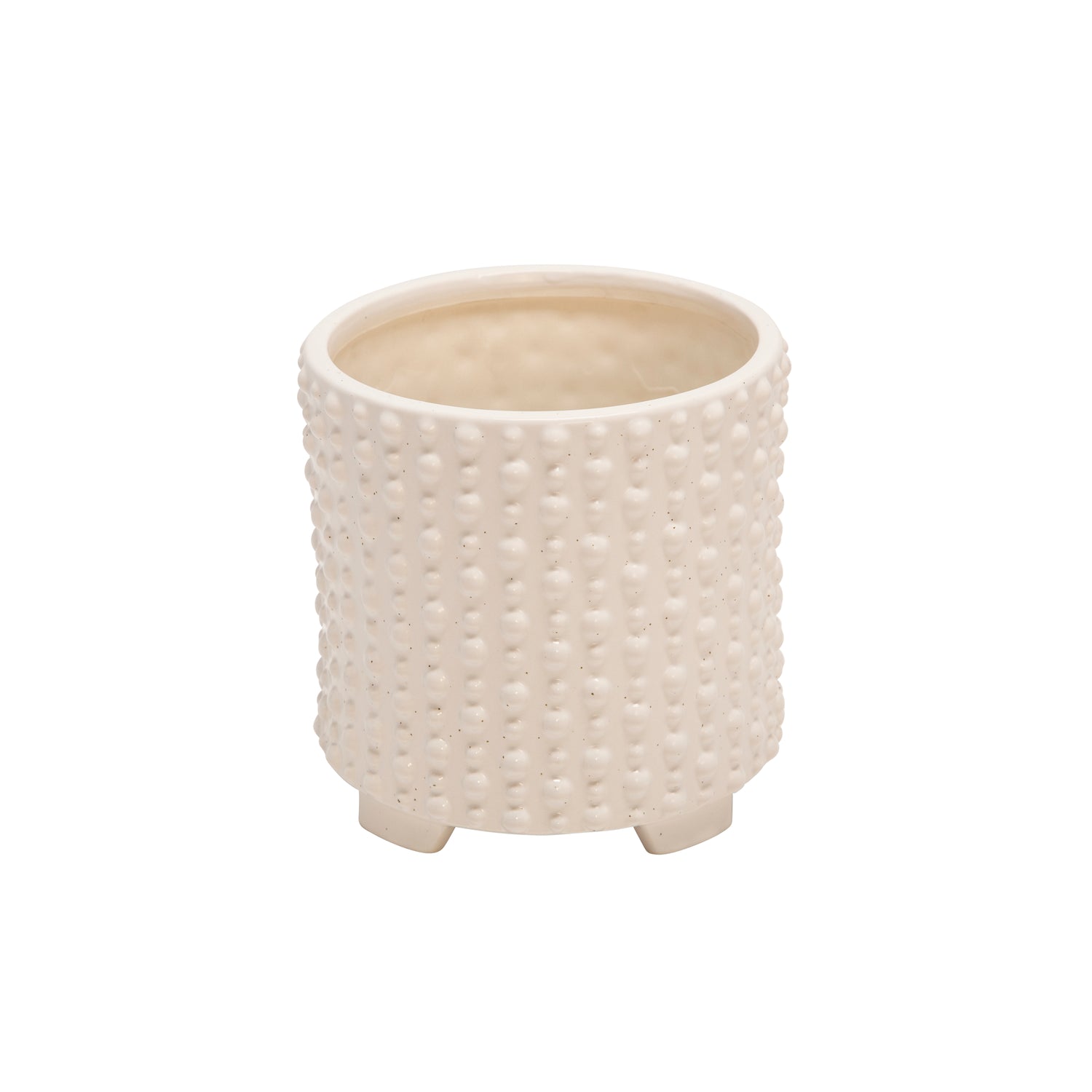 Cache-pot sur pied de 6 po/8 po en céramique blanche à pois - ensemble de 2