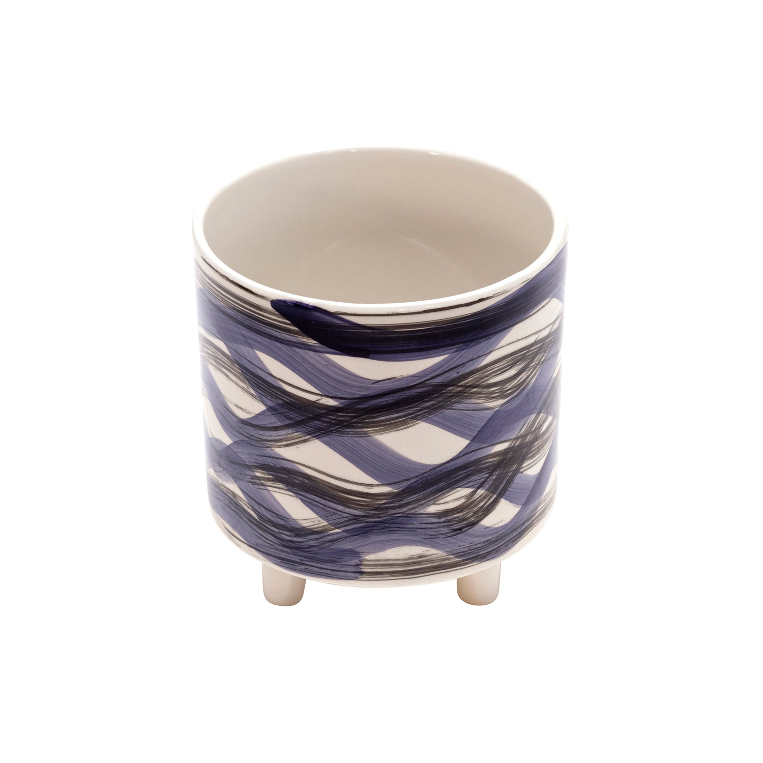 Cache-pot sur pied de 6 po/9 po en céramique avec spirales bleues - ensemble de 2