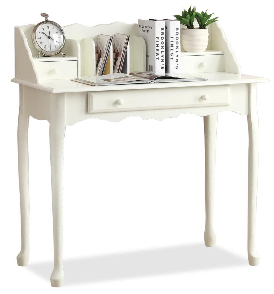 | Détails décoratifs | Pattes en bois de style Queen Anne et poignées de tiroir en bois. |