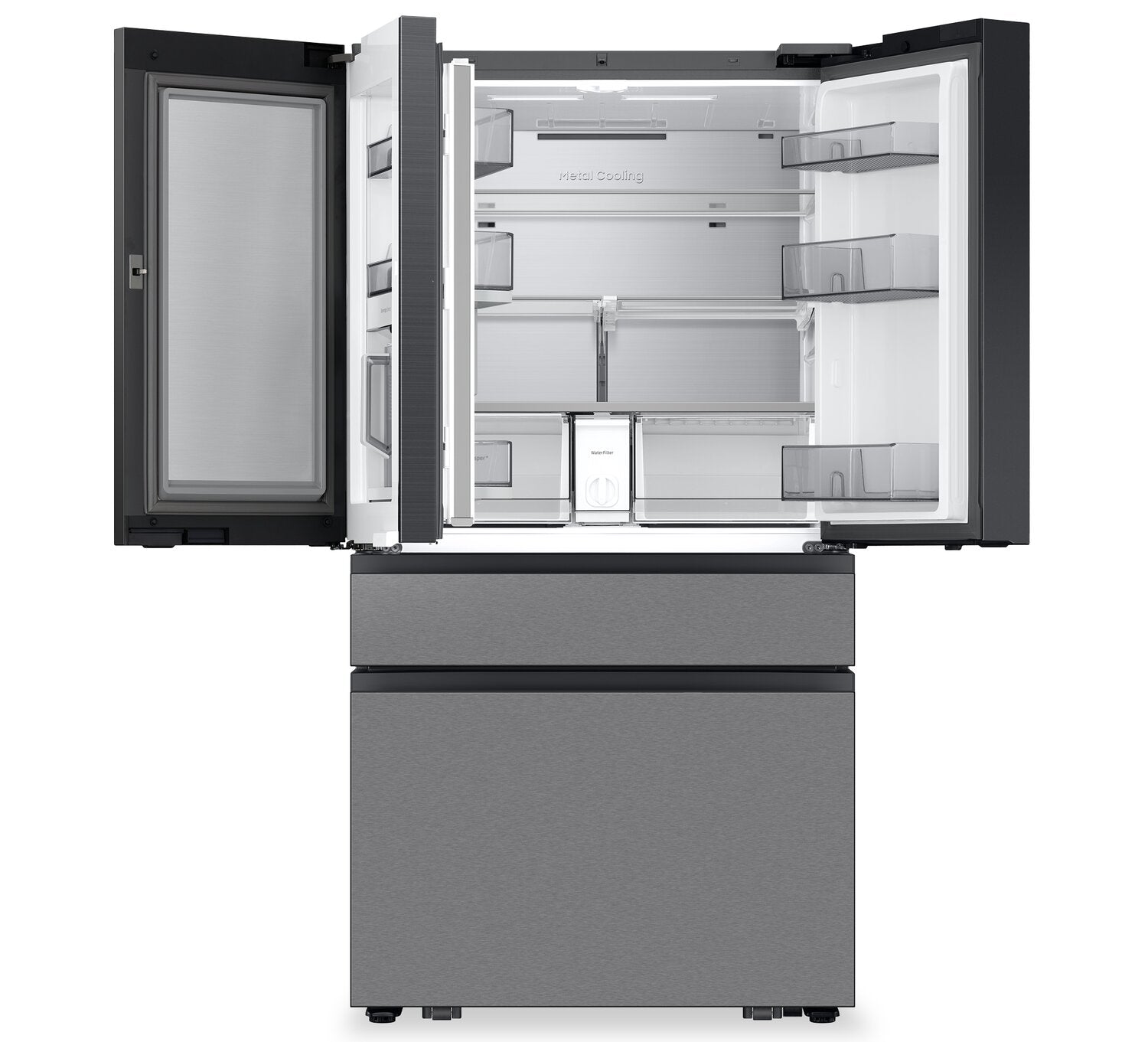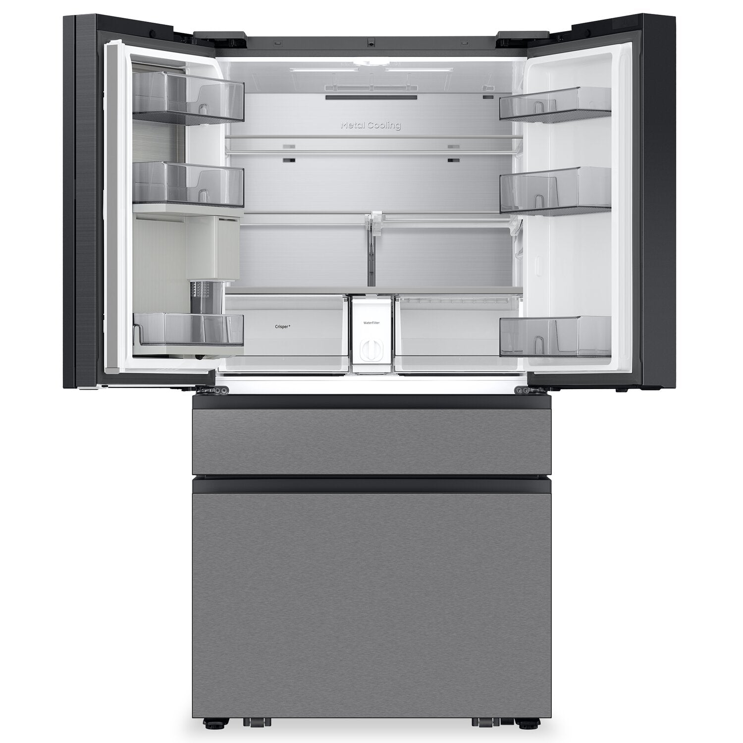 Écran AI Home : Technologie AI Vision Inside : Mode Énergie IA avec SmartThings : Porte à ouverture automatique : Zone de boissons Beverage CenterMC : Machine à glaçons double automatique : Tablette coulissante : Compartiment FlexZoneMC : |