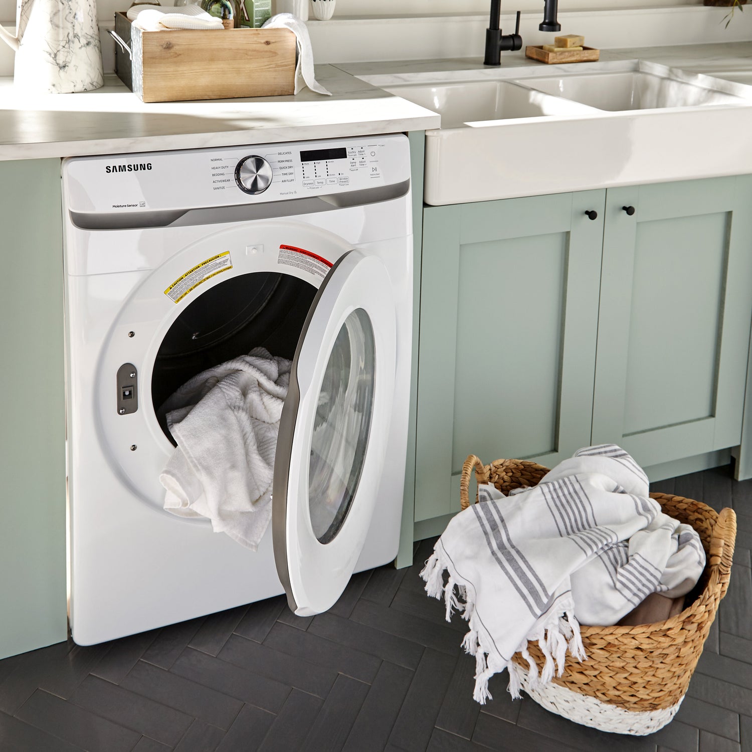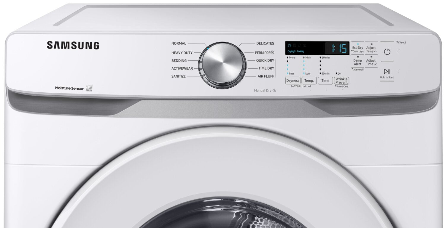 Séchage par capteur : Fonction d'autodiagnostic Smart Care : Grande capacité : Le tambour de cette sécheuse de 7,5 pi3 vous permet de faire sécher plus d’articles en un seul chargement, et ainsi de passer plus de temps à faire ce que vous aimez. Appareil homologué ENERGY STARMD : |