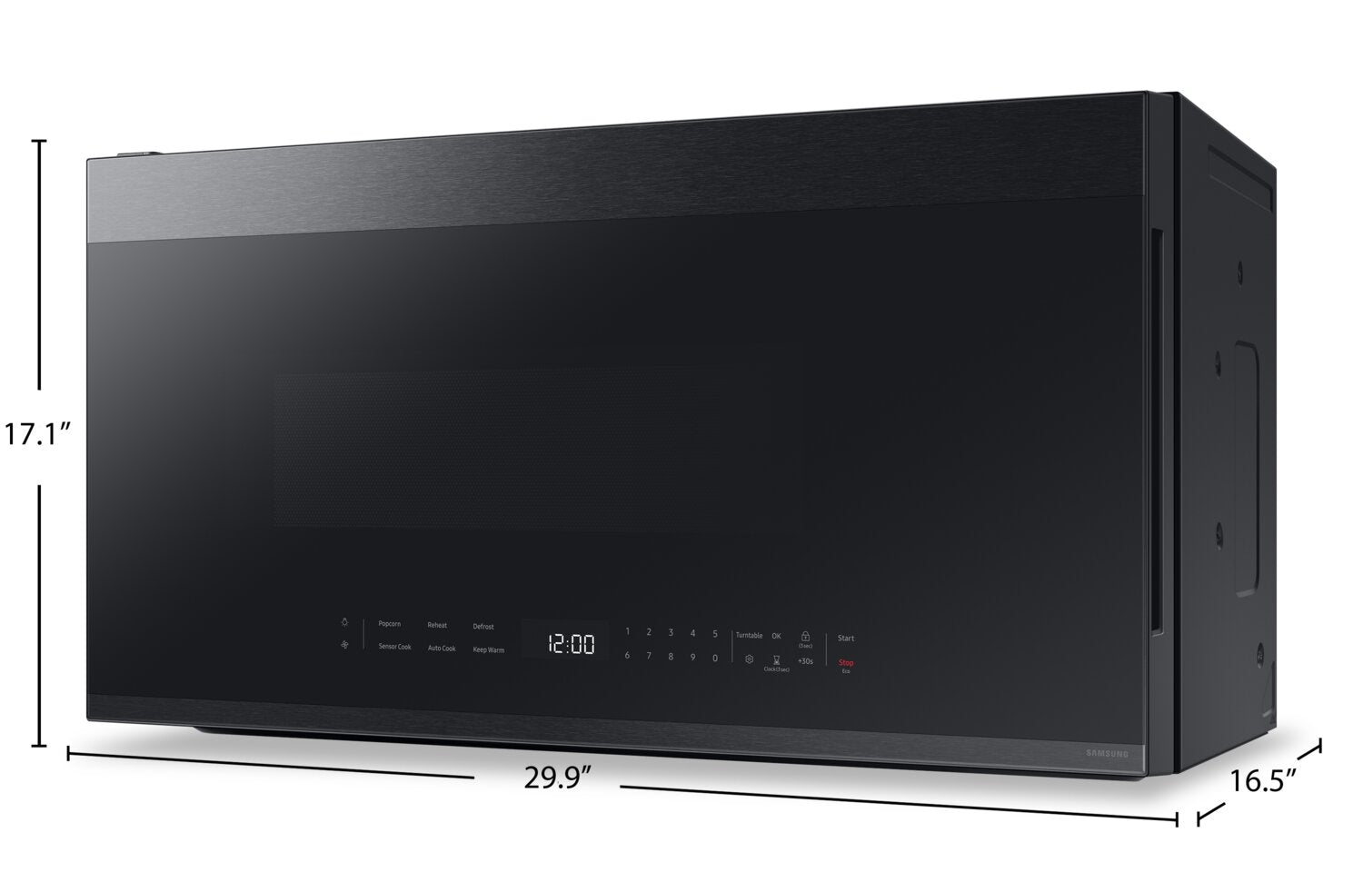Conception Bespoke : Four à capacité de 2,1 pi3 : Aspiration puissante : Puissance maximale de 950 W : Système d'éclairage à DEL sur la surface de cuisson : Réglage sans effort grâce à SmartThings : |