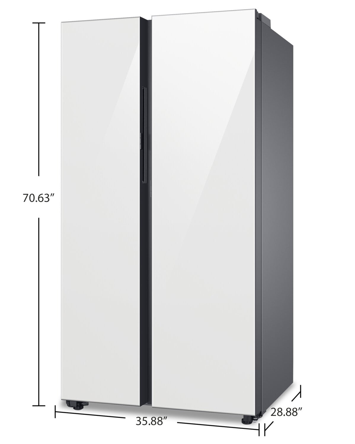 Portes à ouverture automatique : Zone de boissons Beverage CenterMC : Machine à glaçons double automatique : Technologie SpaceMaxMC : Tablette coulissante : Fonctions de refroidissement et de congélation rapides : Refroidissement complet : Technologie intelligente : Surveillez et gérez le rendement du réfrigérateur à partir de votre téléphone intelligent à l’aide de l’application SmartThings. Gérez facilement les modes de refroidissement rapide, changez la température et recevez des alertes si la porte est restée ouverte. Vous pouvez également surveiller la consommation d’énergie et déterminer n’importe quel problème. Appareil homologué ENERGY STARMD : |