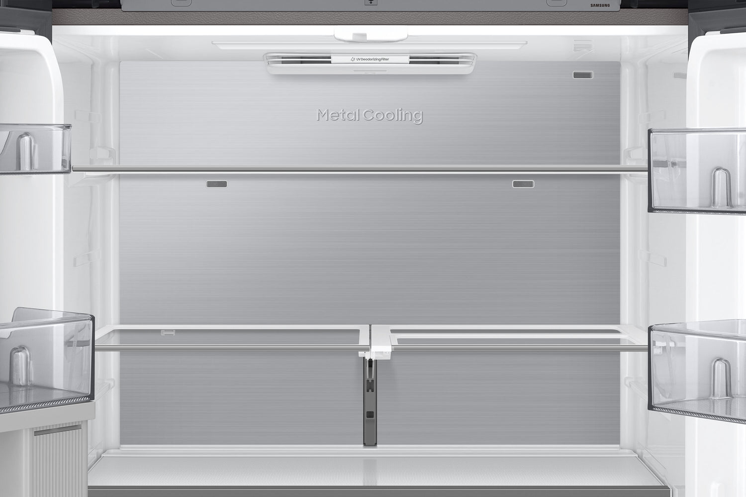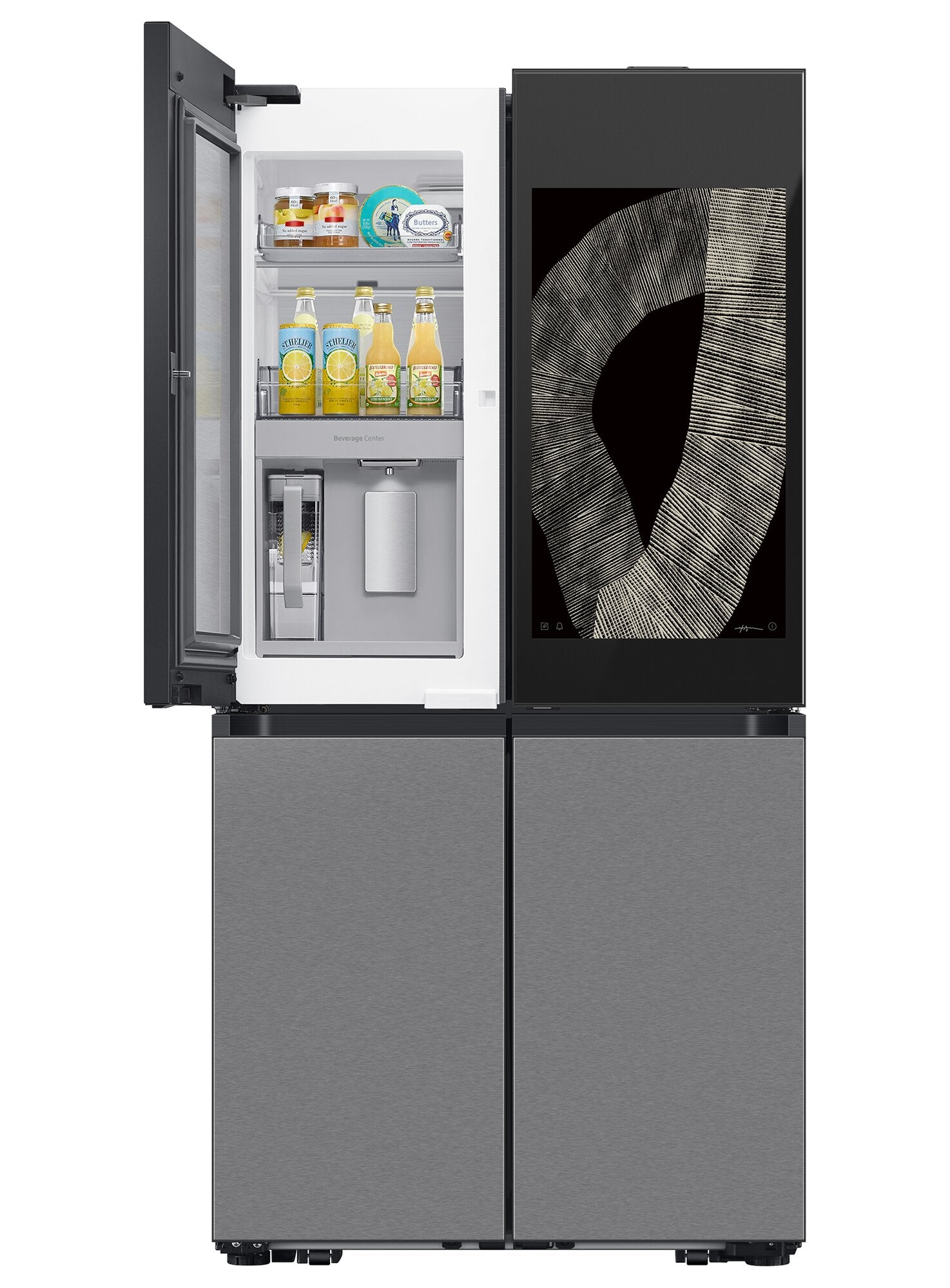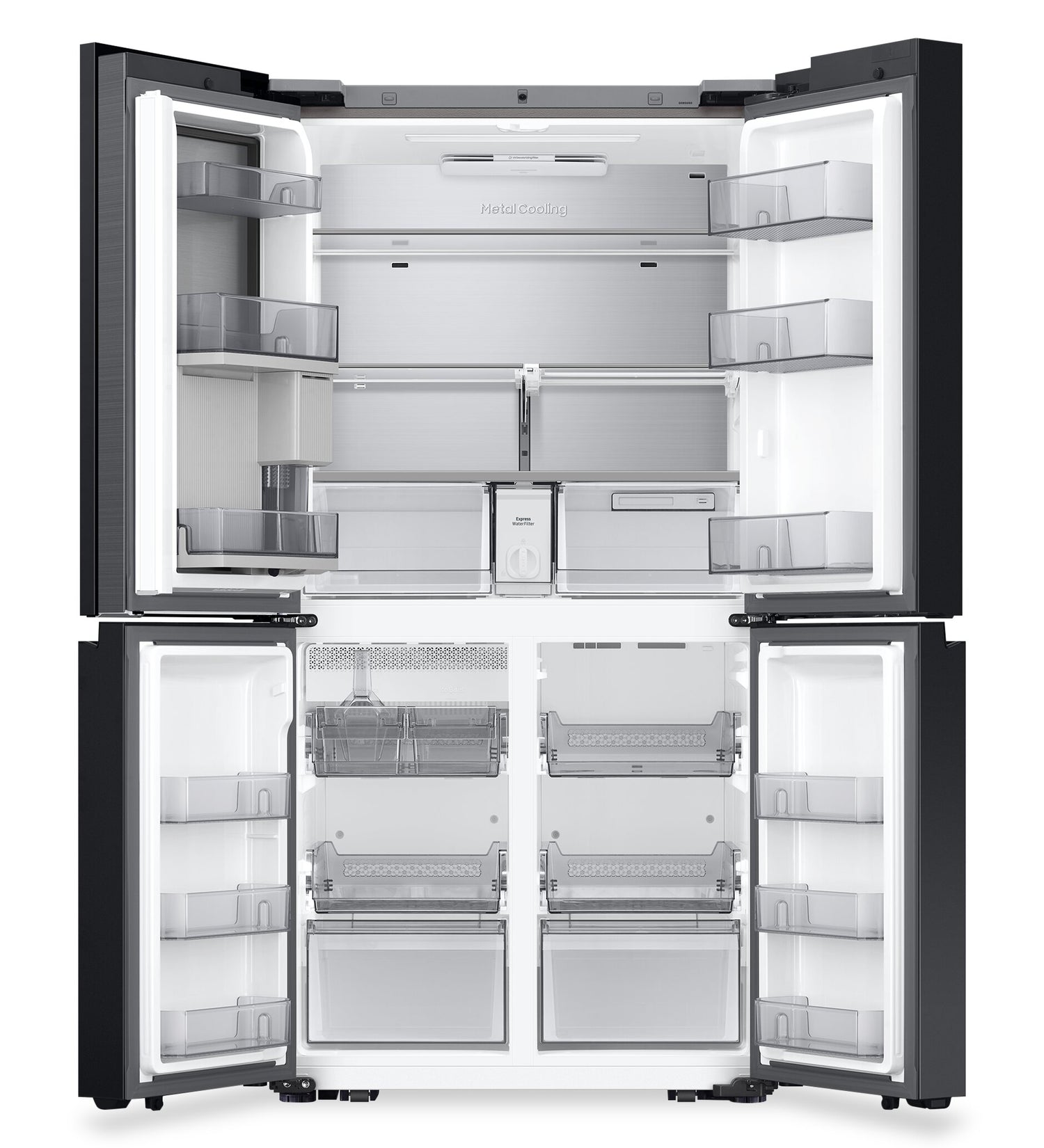 Personnalisation avec les couleurs Bespoke : Portail Family Hub+MC avec IA : Vision IA de l’intérieur : Zone de boissons Beverage CenterMC : Porte à ouverture automatique : Machine à glaçons double automatique : Tablette coulissante : Compartiment FlexZoneMC : |