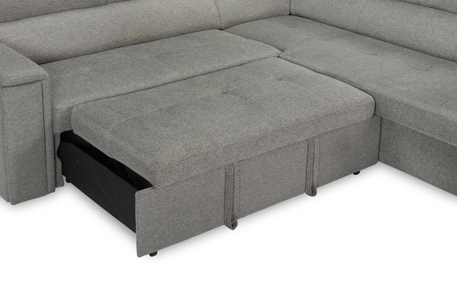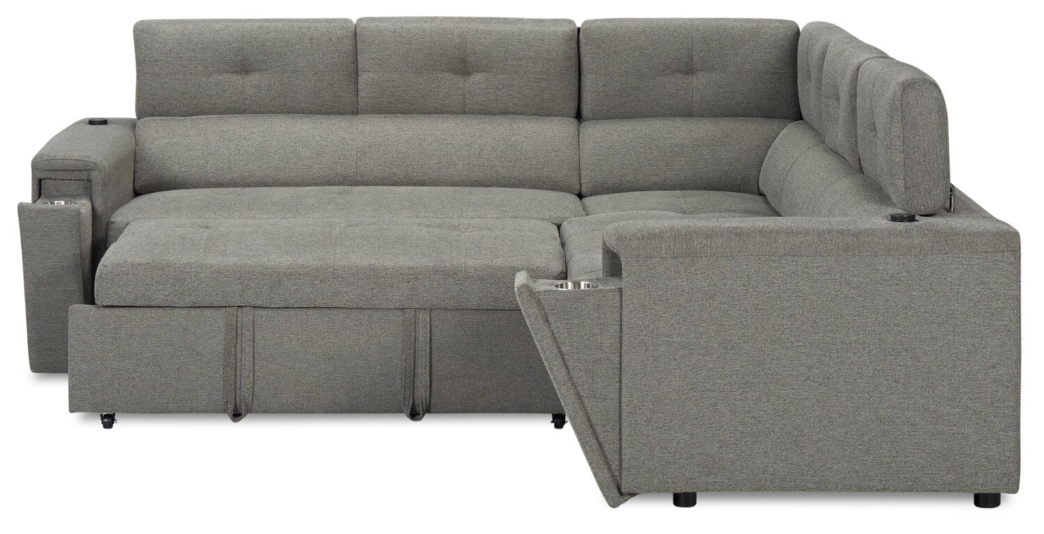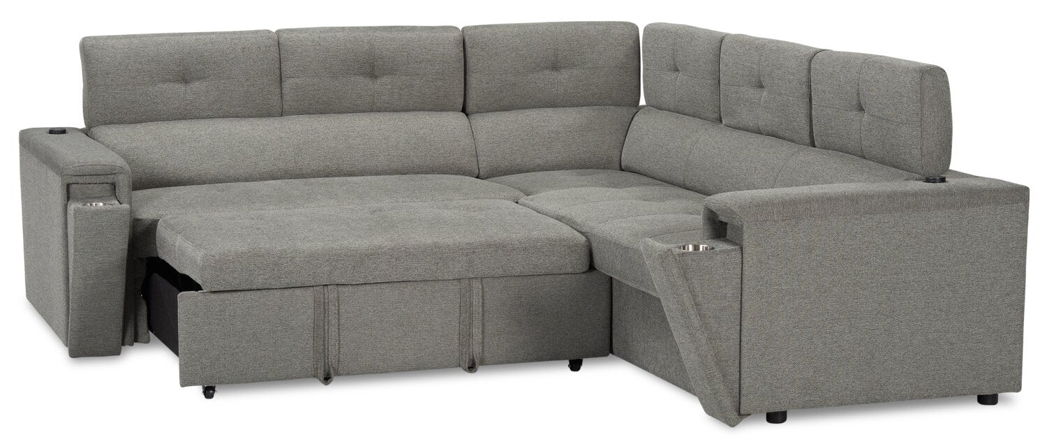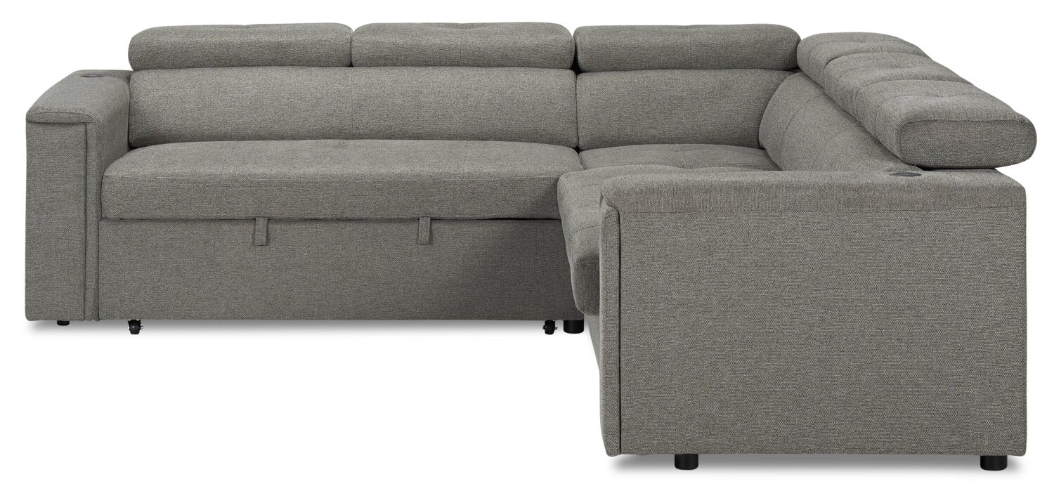 Sofa-lit sectionnel de gauche Savvy 2 pièces en tissu d’apparence lin avec appuie-têtes réglables - gris