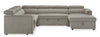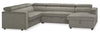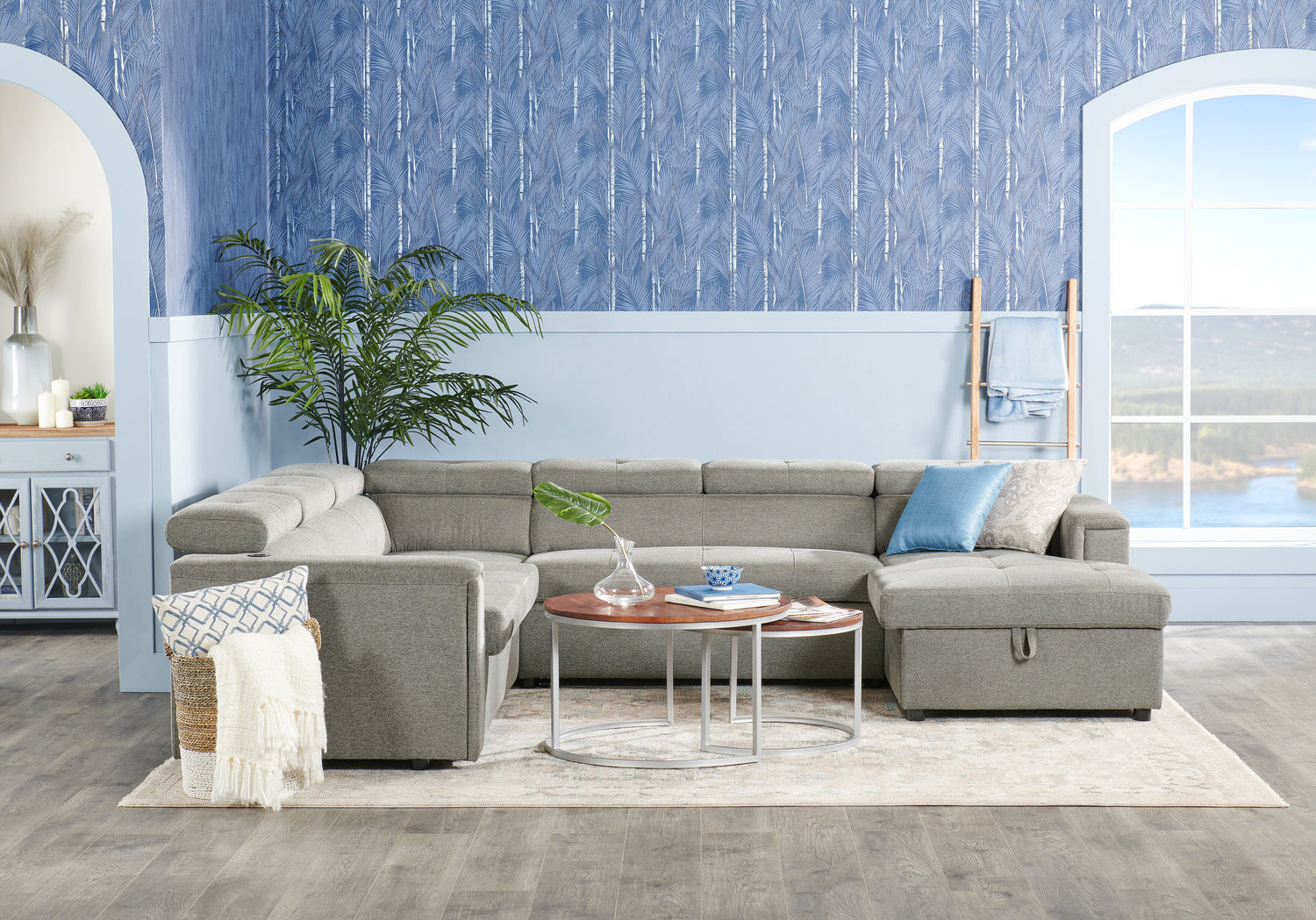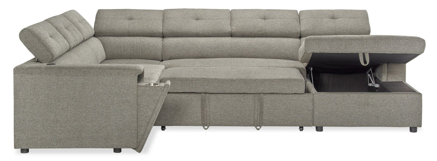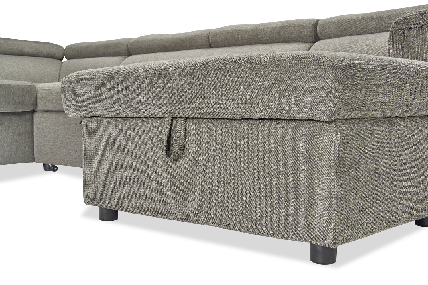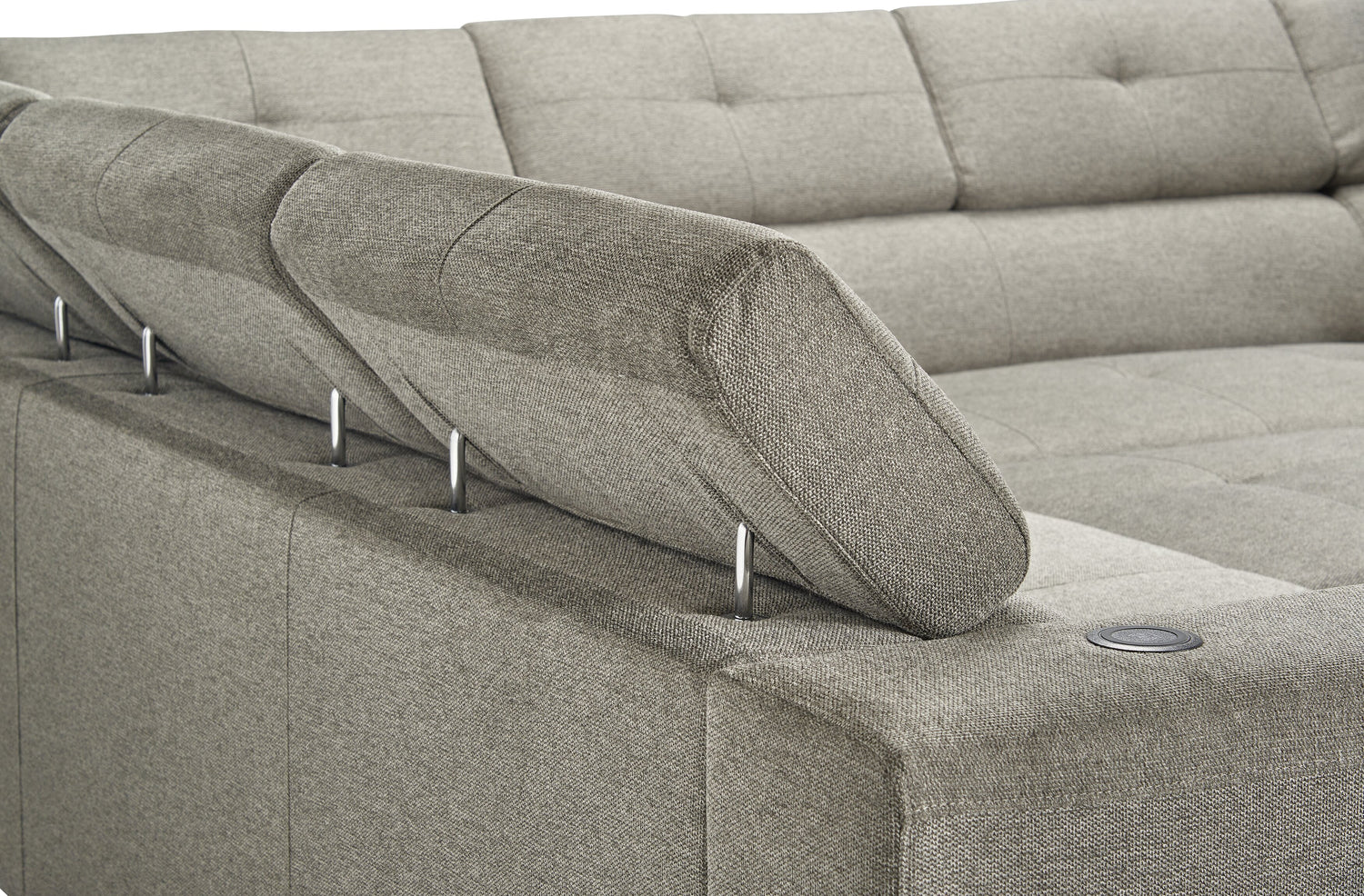 Sofa-lit sectionnel de droite Savvy 3 pièces en tissu d’apparence lin avec fauteuil long de rangement et appuie-têtes réglables - gris