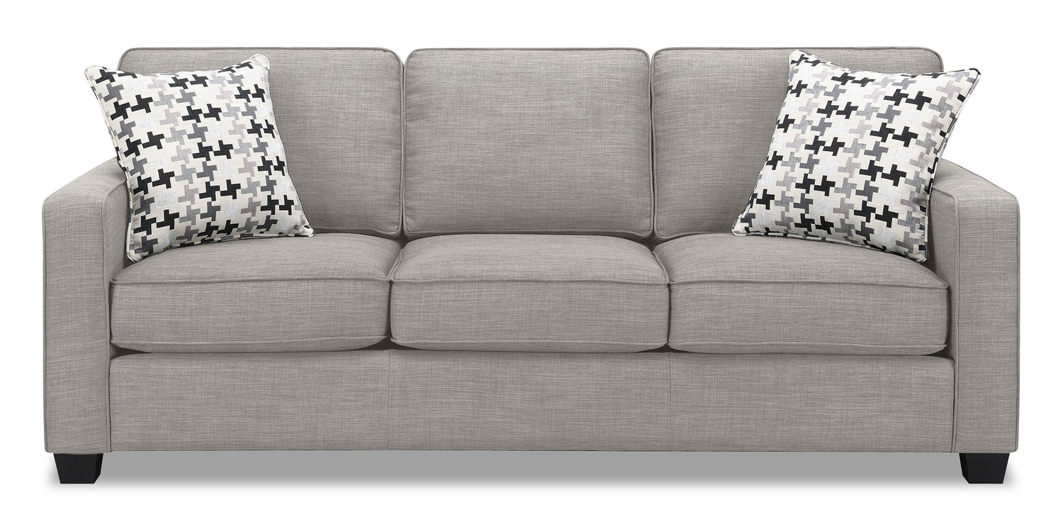 Sofa Sawyer de 83 po fabriqué au Canada en tissu d’apparence lin avec coussins réversibles et coussins décoratifs - gris clair