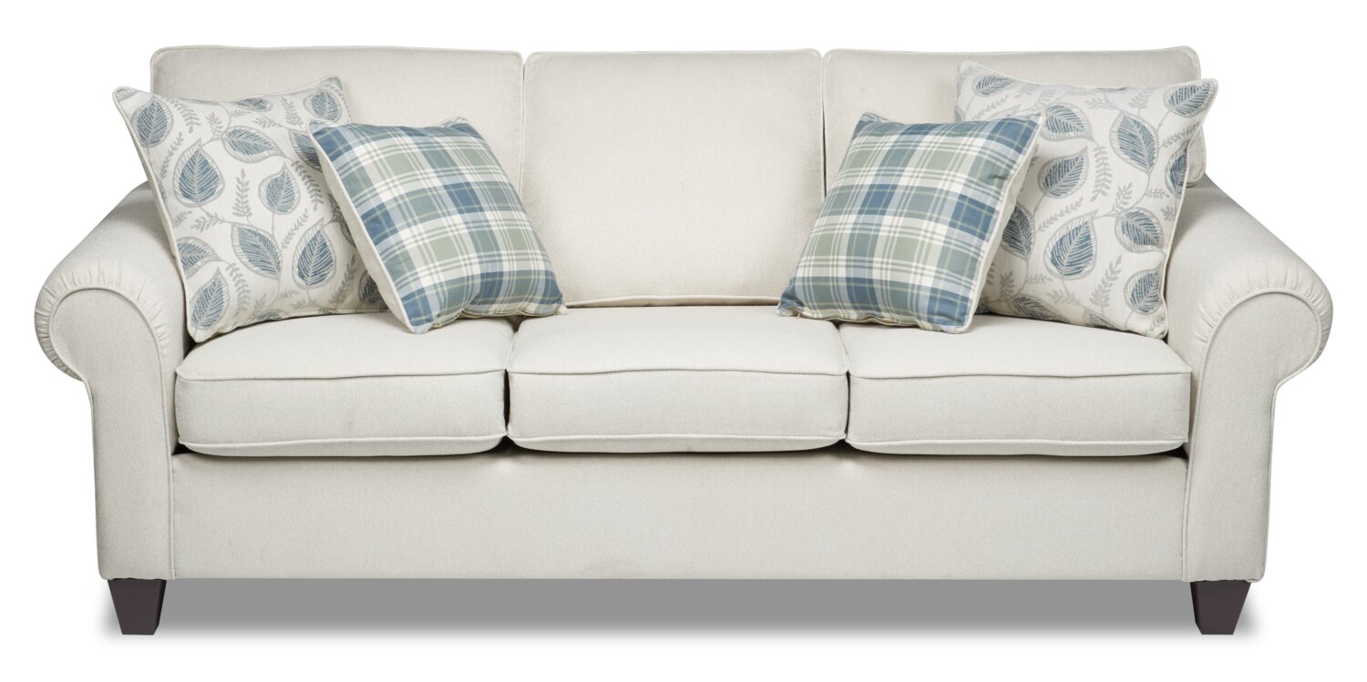 | Coussins décoratifs | Oui, deux à motifs écossais bleus et verts, deux à motifs de feuilles bleues et grises. Le revers des quatre coussins est doté d’un tissu en chenille assorti. |