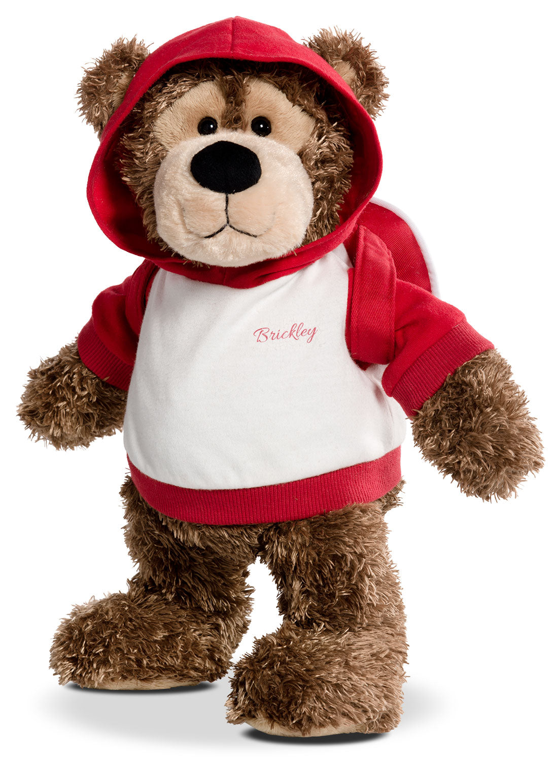 - En plus de son chandail rouge et blanc, Brickley arbore une épaisse fourrure brune sur son corps et une fourrure d'un beige crémeux sur son museau et ses pattes. Brickley possède également un sac à dos rouge qu'il apporte à l'école.
