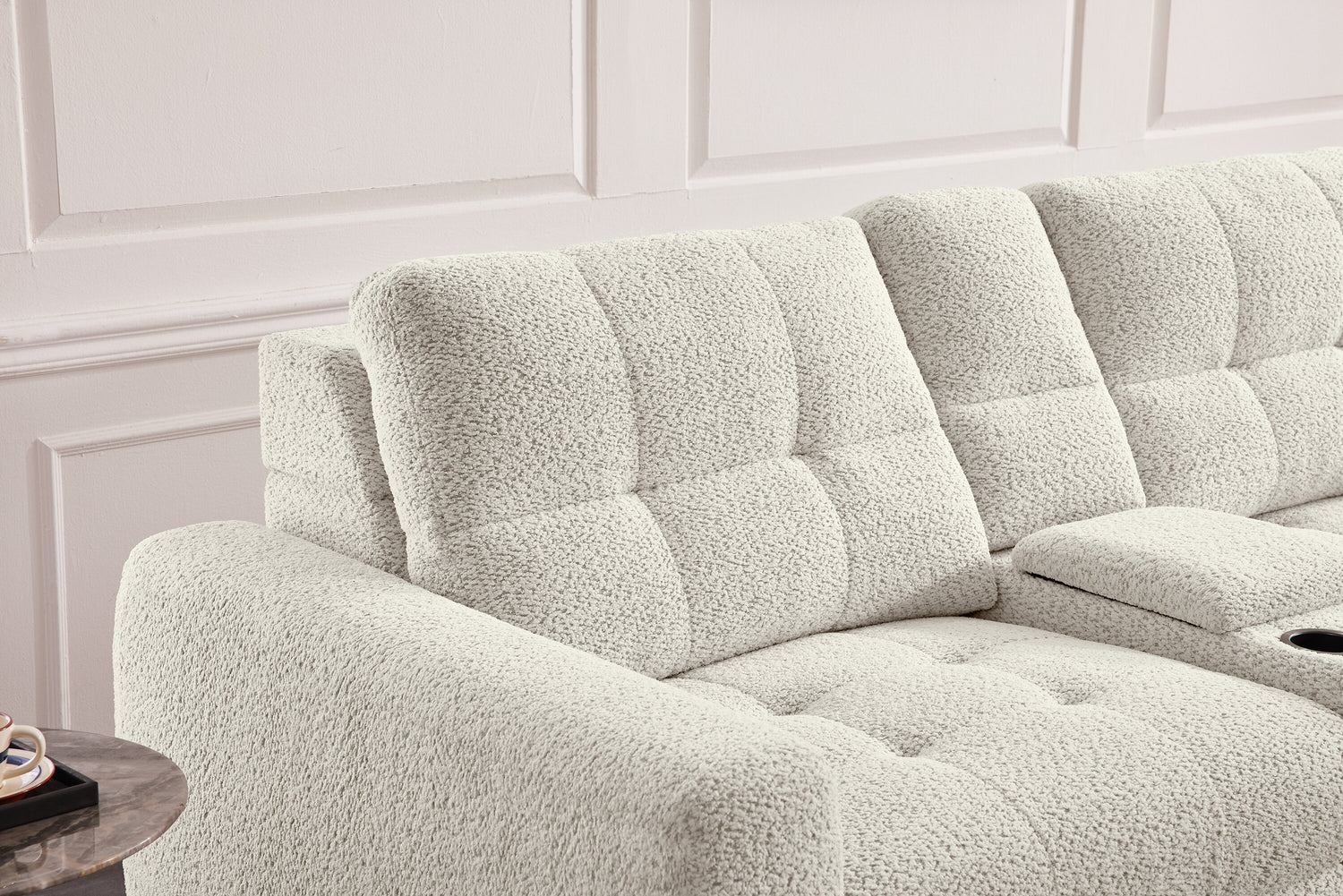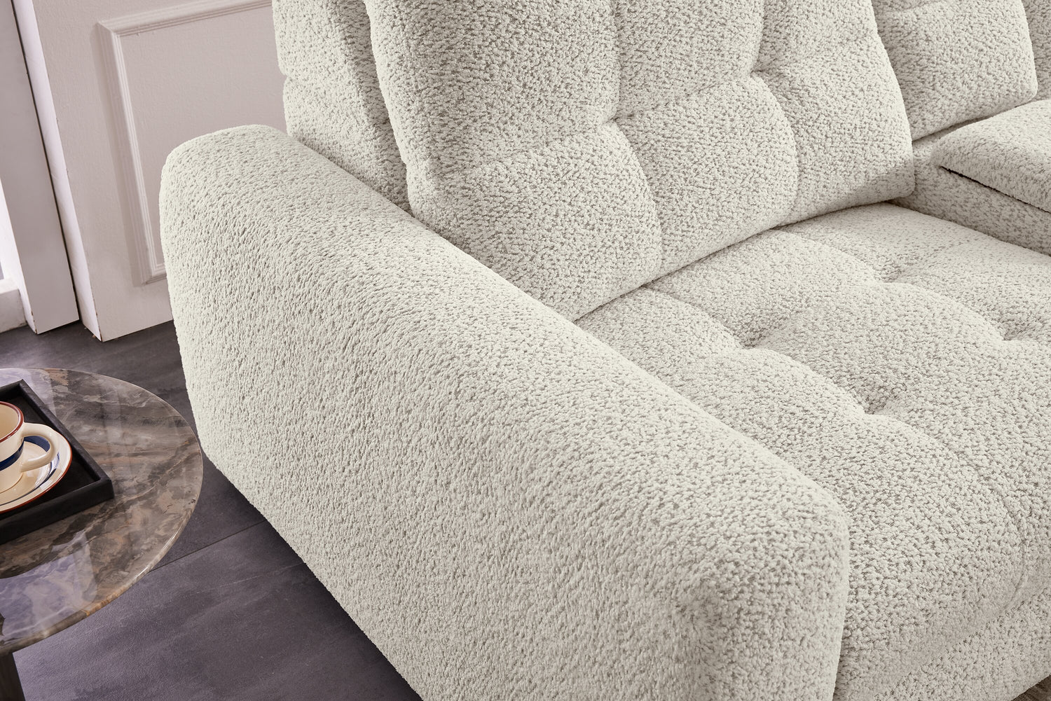 | Détails décoratifs | Le tissu moelleux en chenille confère une sensation douillette à ce meuble. |