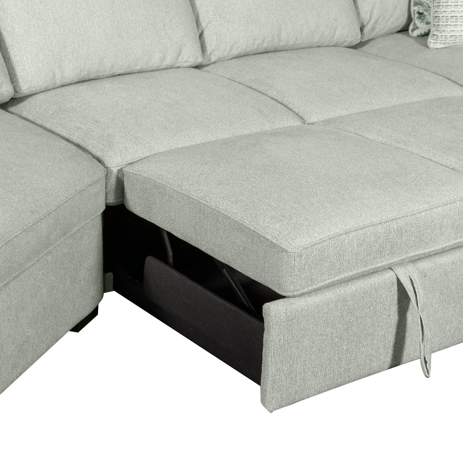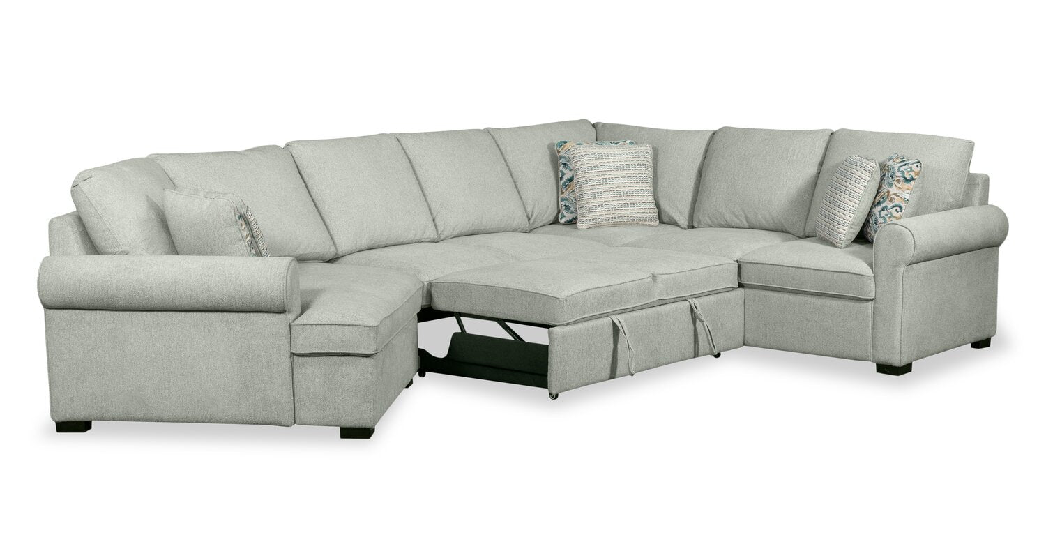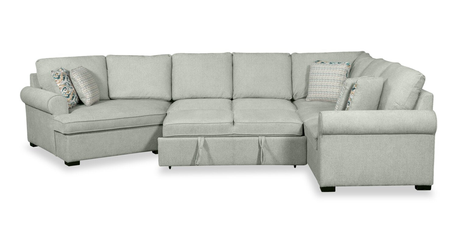 Sofa-lit sectionnel enveloppant de gauche Haven de Scott Living 3 pièces en tissu de chenille - bleu écume de mer