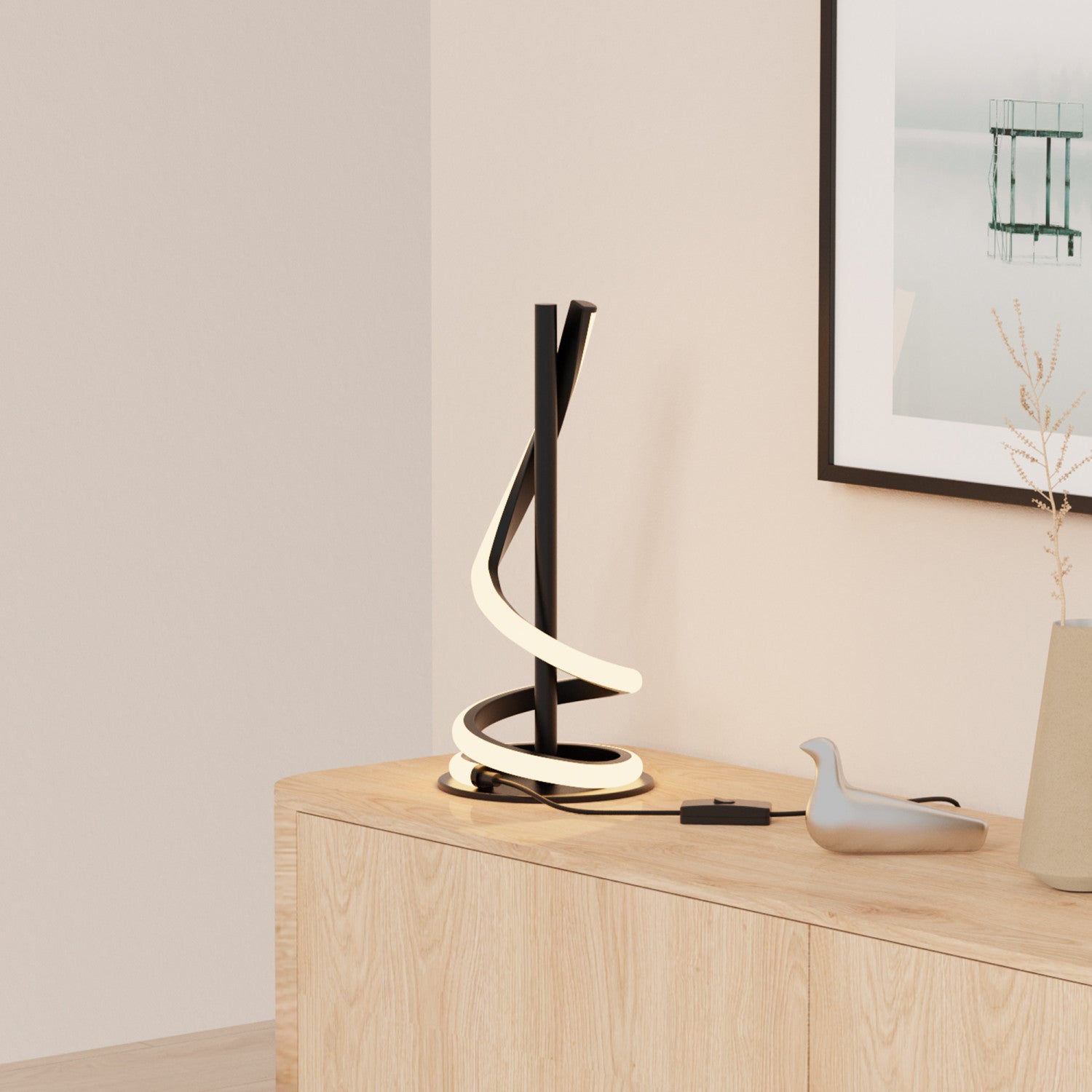 Cette lampe de table saisissante noir mat de 16 po, dotée d’une conception sculpturale courbée, fait grande impression dans n’importe quelle pièce. Elle émet une lumière chaleureuse de 3 000 K et est équipée d’une fonction de gradation tactile pratique qui vous permet de régler la luminosité pour qu’elle convienne parfaitement à votre humeur.