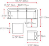 - Pouf (H x L x P) : 16,5 po x 30,3 po x 37,8 po (42 cm x 77 cm x 96 cm).