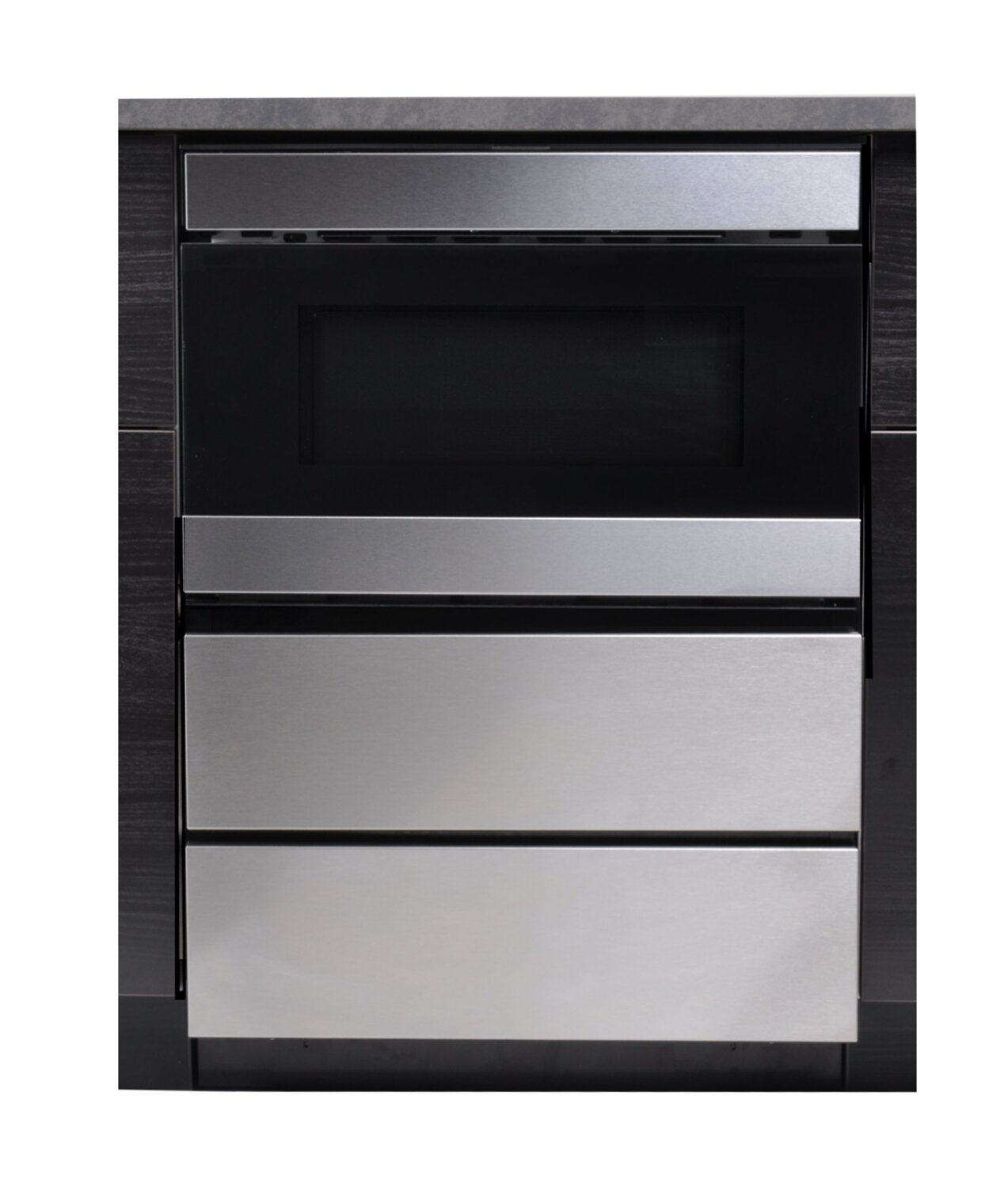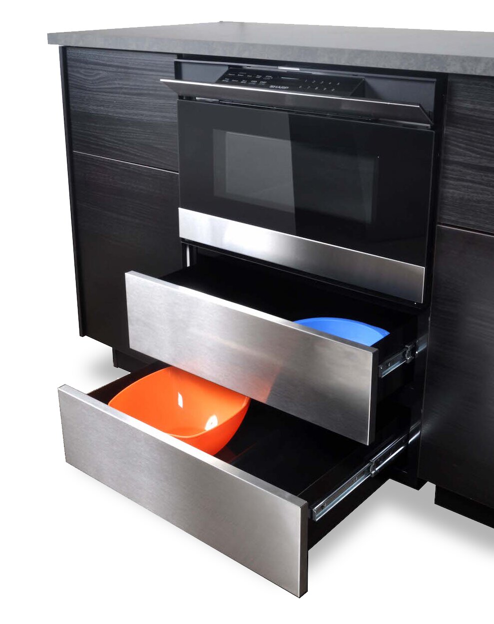 Deux tiroirs à ouverture par pression : Installation simple : Pattes réglables : Élevez votre tiroir four à micro-ondes : |