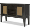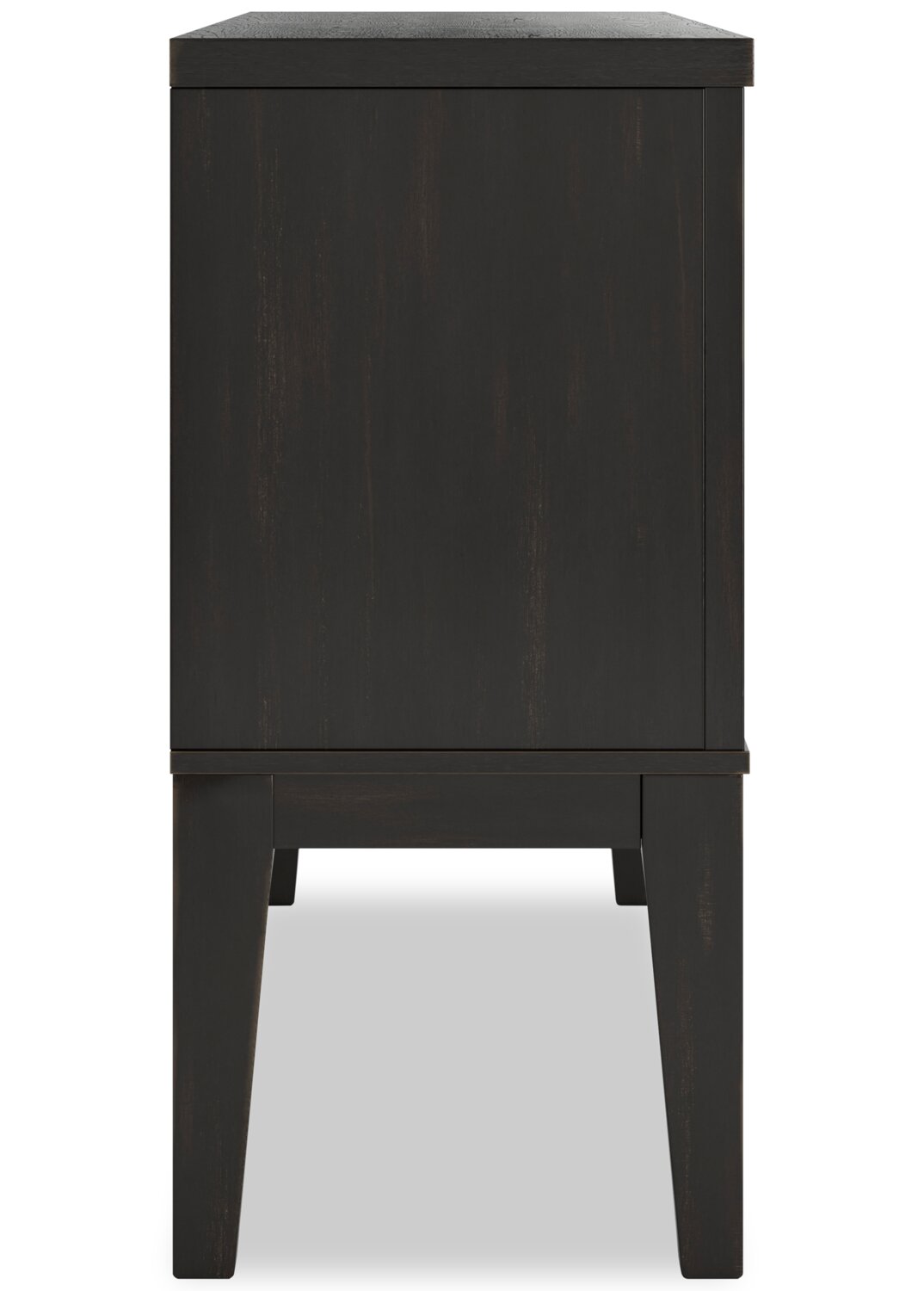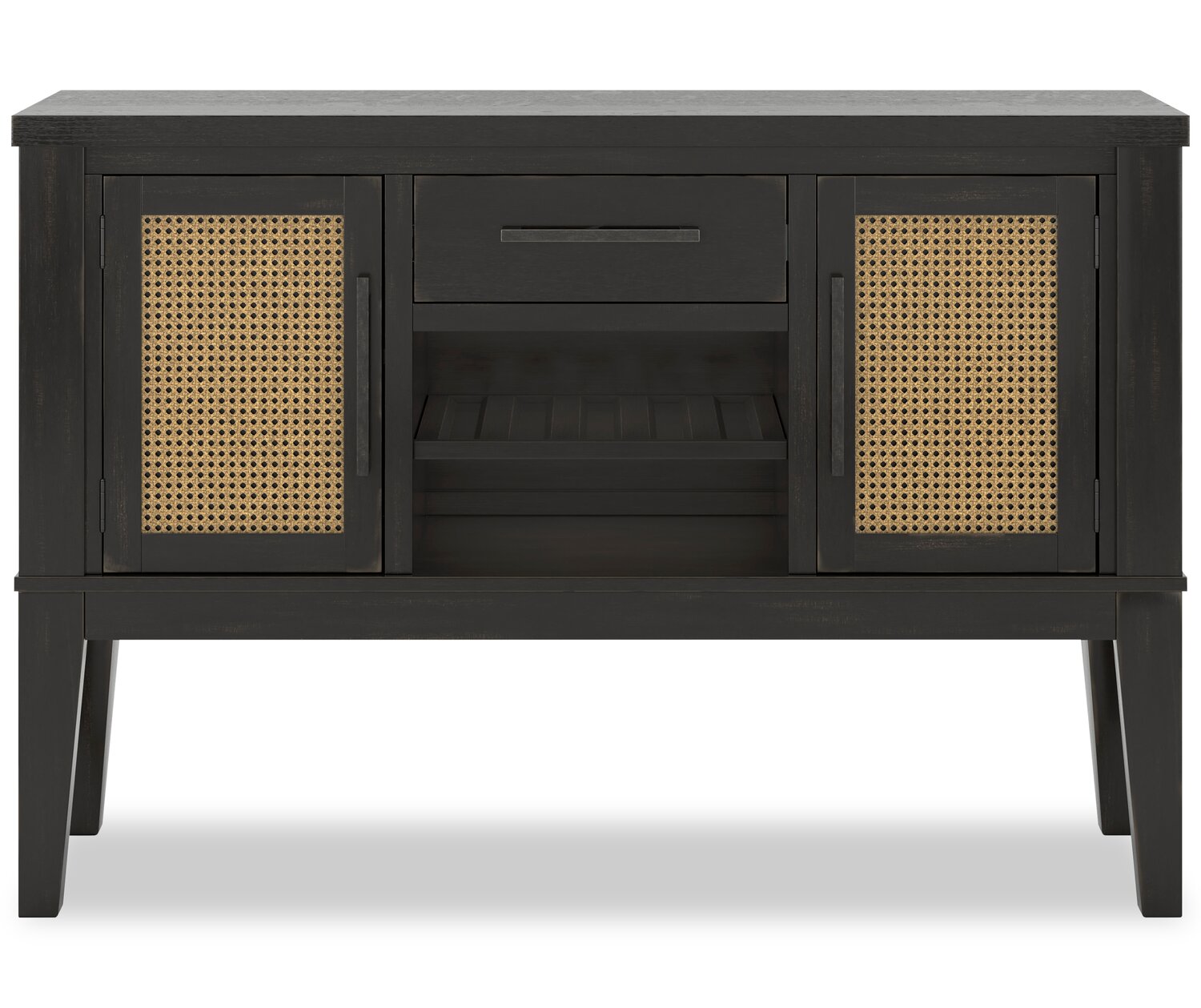 | Détails décoratifs | Des touches de roseau synthétique et un fini noir vieilli avec un effet frotté arborent des textures attrayantes. |