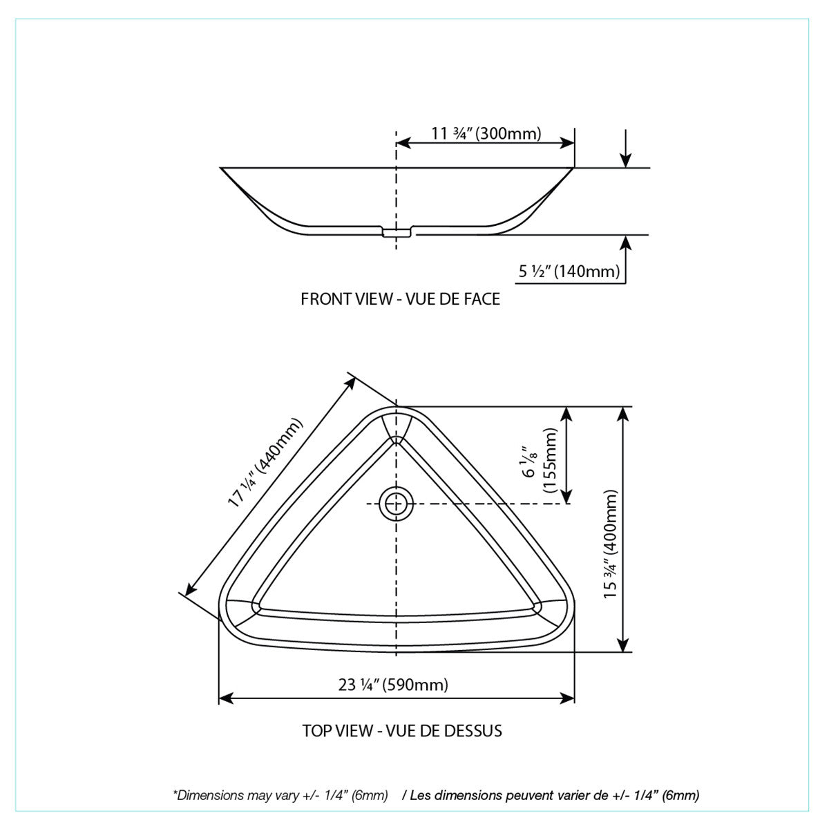 Largeur : 17,32 po (44,0 cm) Hauteur : 5,51 po (14,0 cm) Profondeur : 23,22 po (59,0 cm)