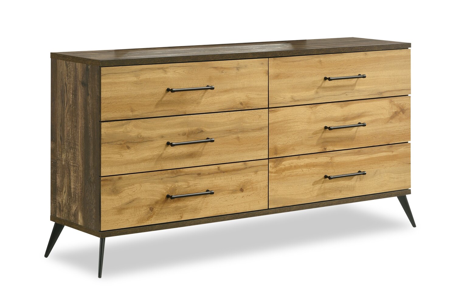 Commode de chambre à coucher Silas de 64 po (L) x 33,4 po (H) à 6 tiroirs - brun rustique