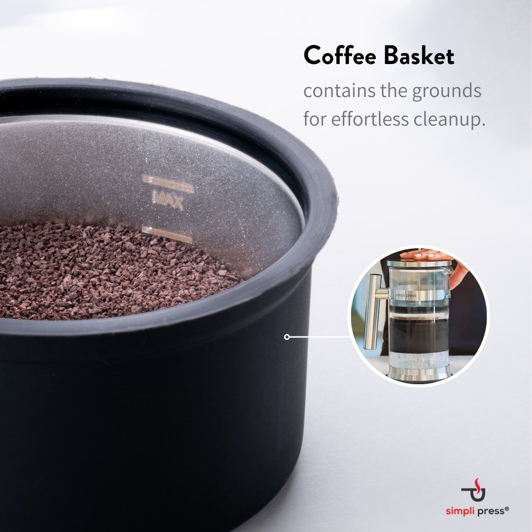 Rafraîchissez votre rituel. Perfectionnez votre café matinal. Le filtre double à gravures fines permet l’utilisation de marc de café moyen-fin pour obtenir une infusion douce et très savoureuse en seulement trois minutes. Le nettoyage se fait sans effort. Le panier à café et le filtre se soulèvent ensemble de la cafetière, ce qui facilite le retrait du marc. Plus besoin de le prendre avec une cuillère et de gratter.