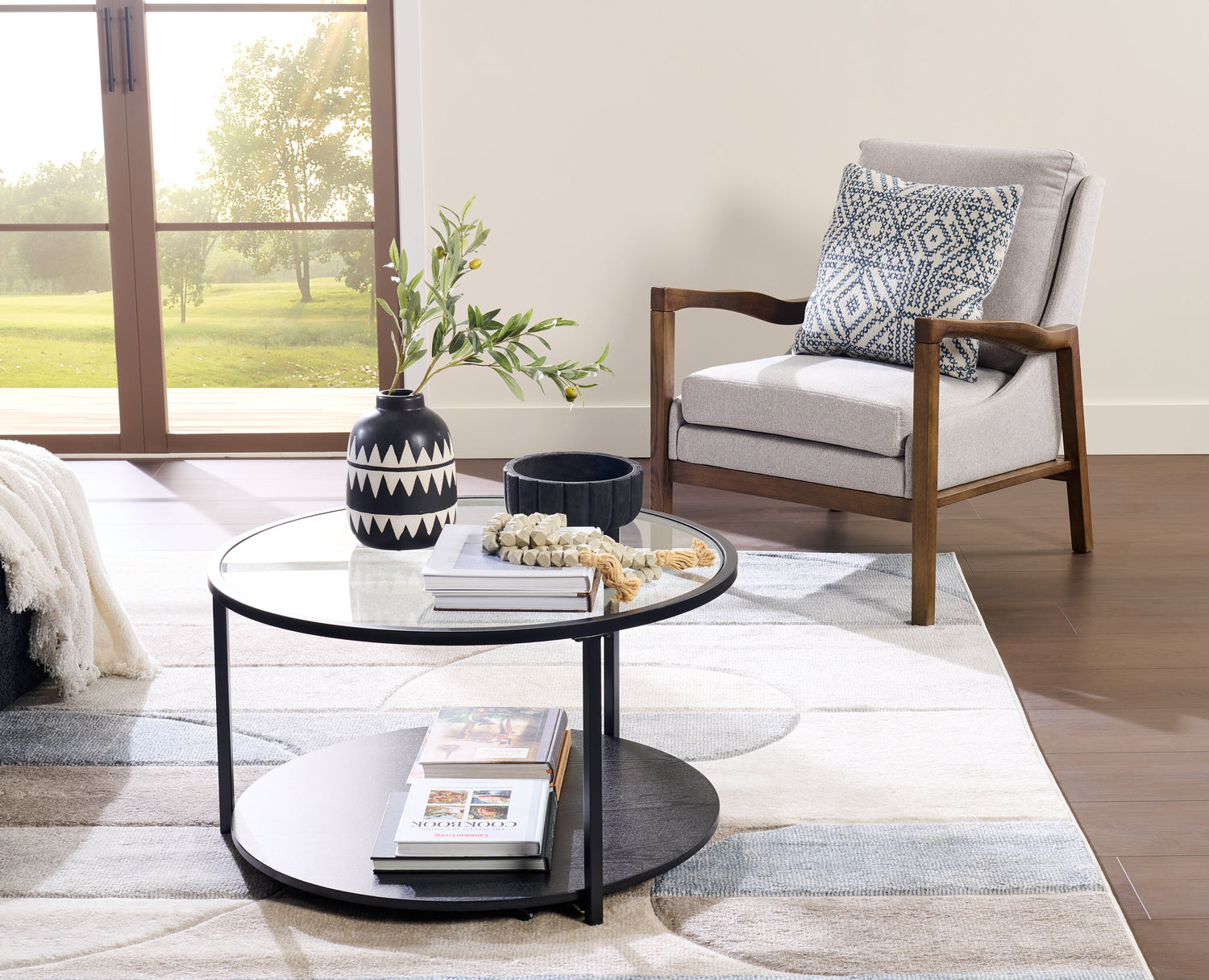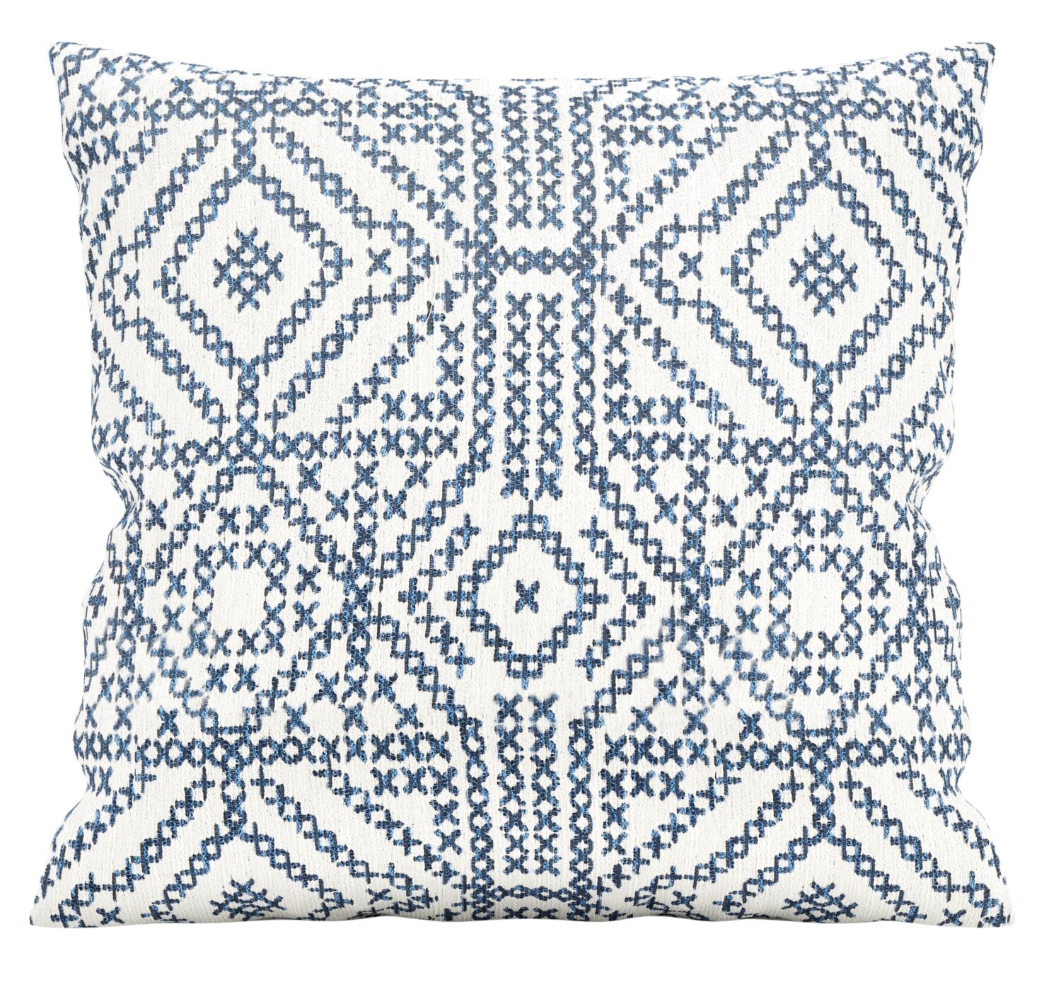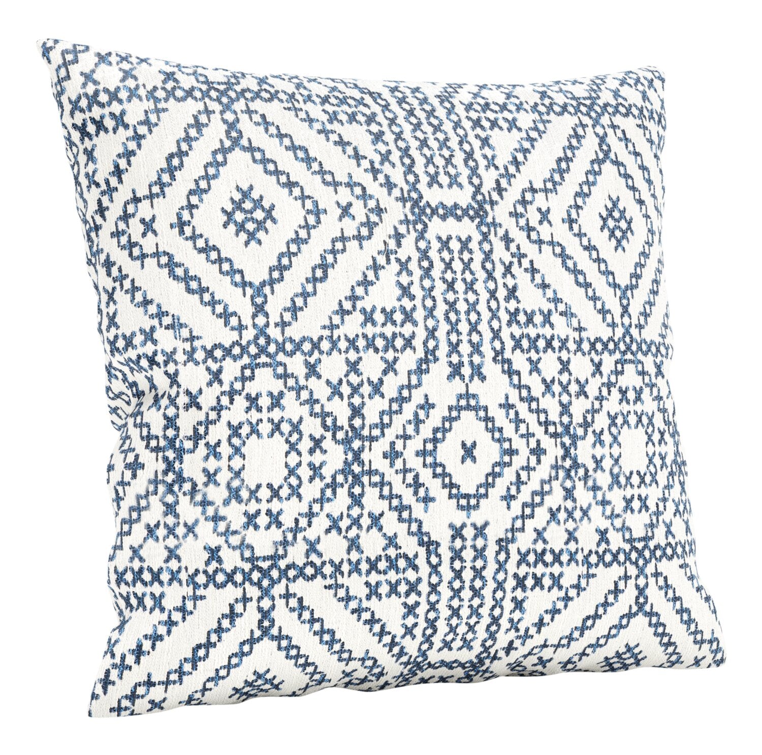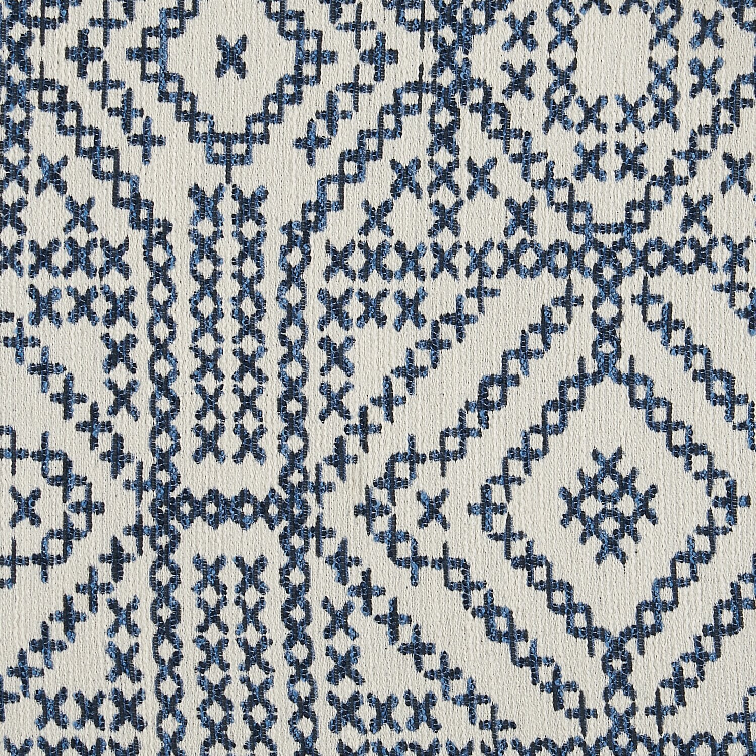 | Détails décoratifs | Imprimé de style point de croix bleu. |